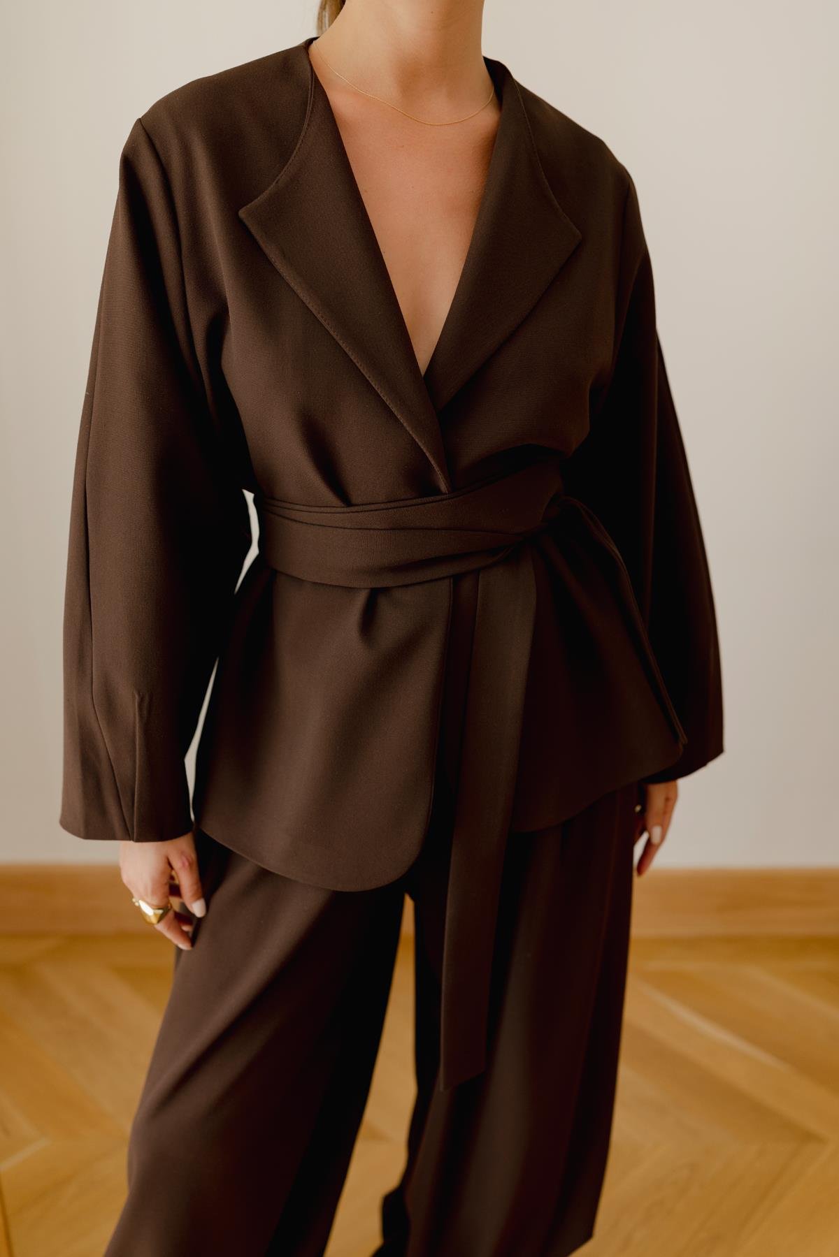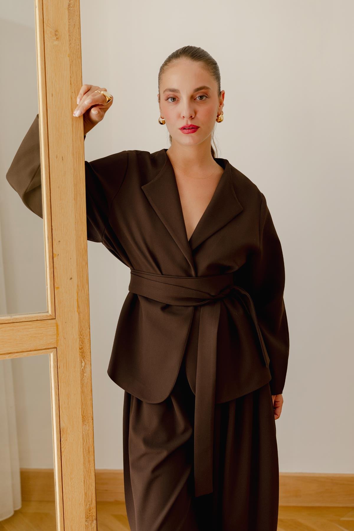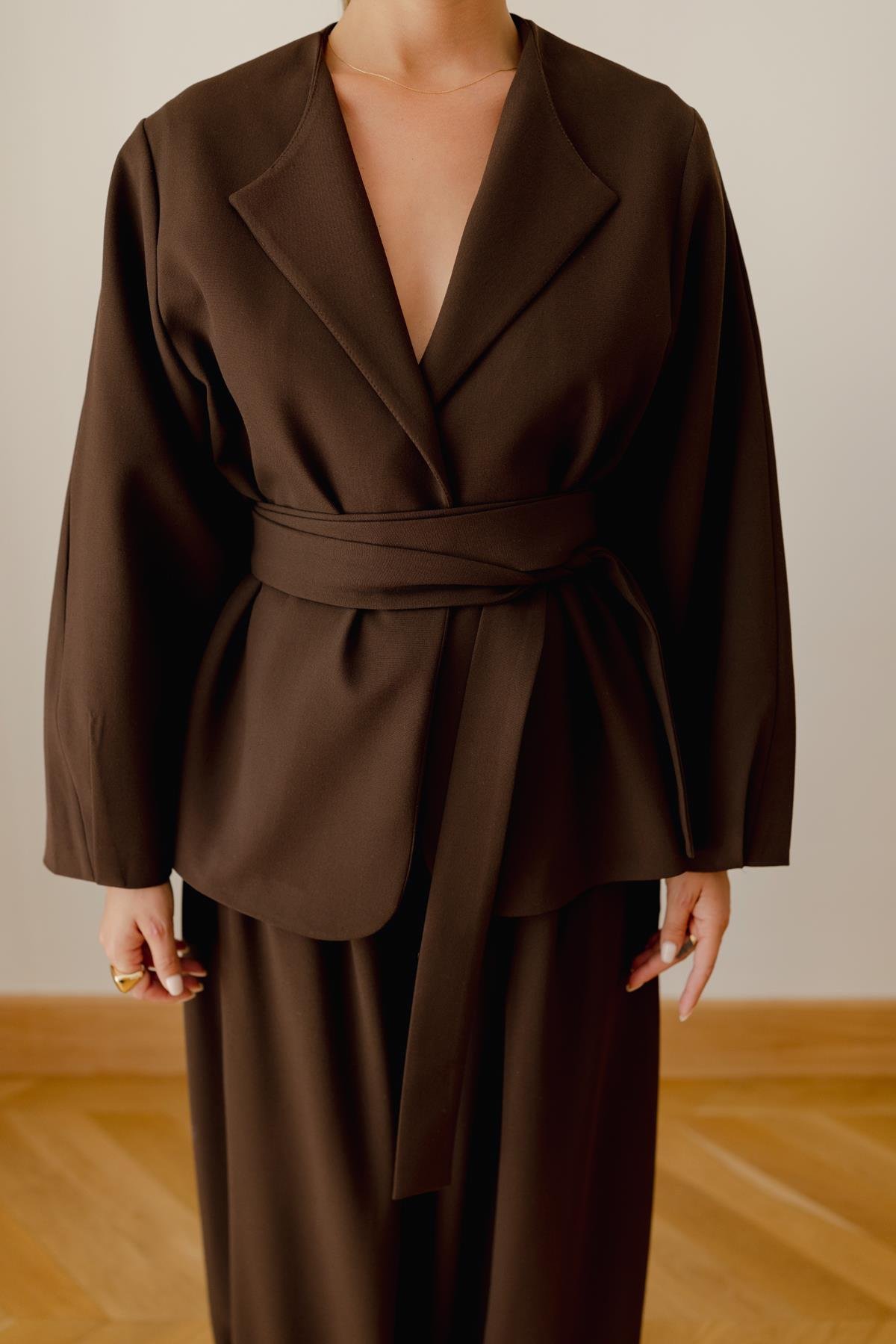 Acı Kahve Balon Kol Kuşaklı Kimono (118-00091)