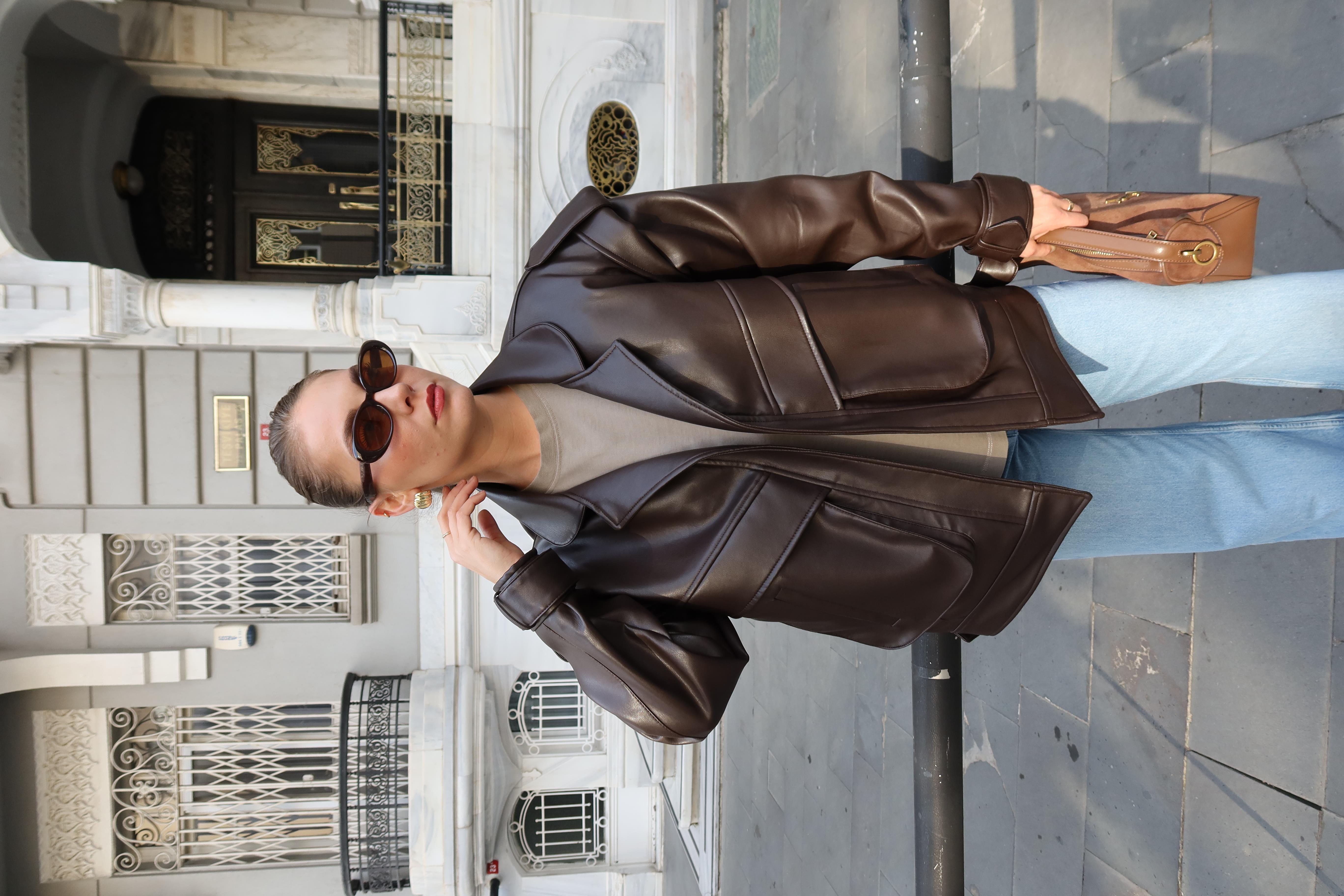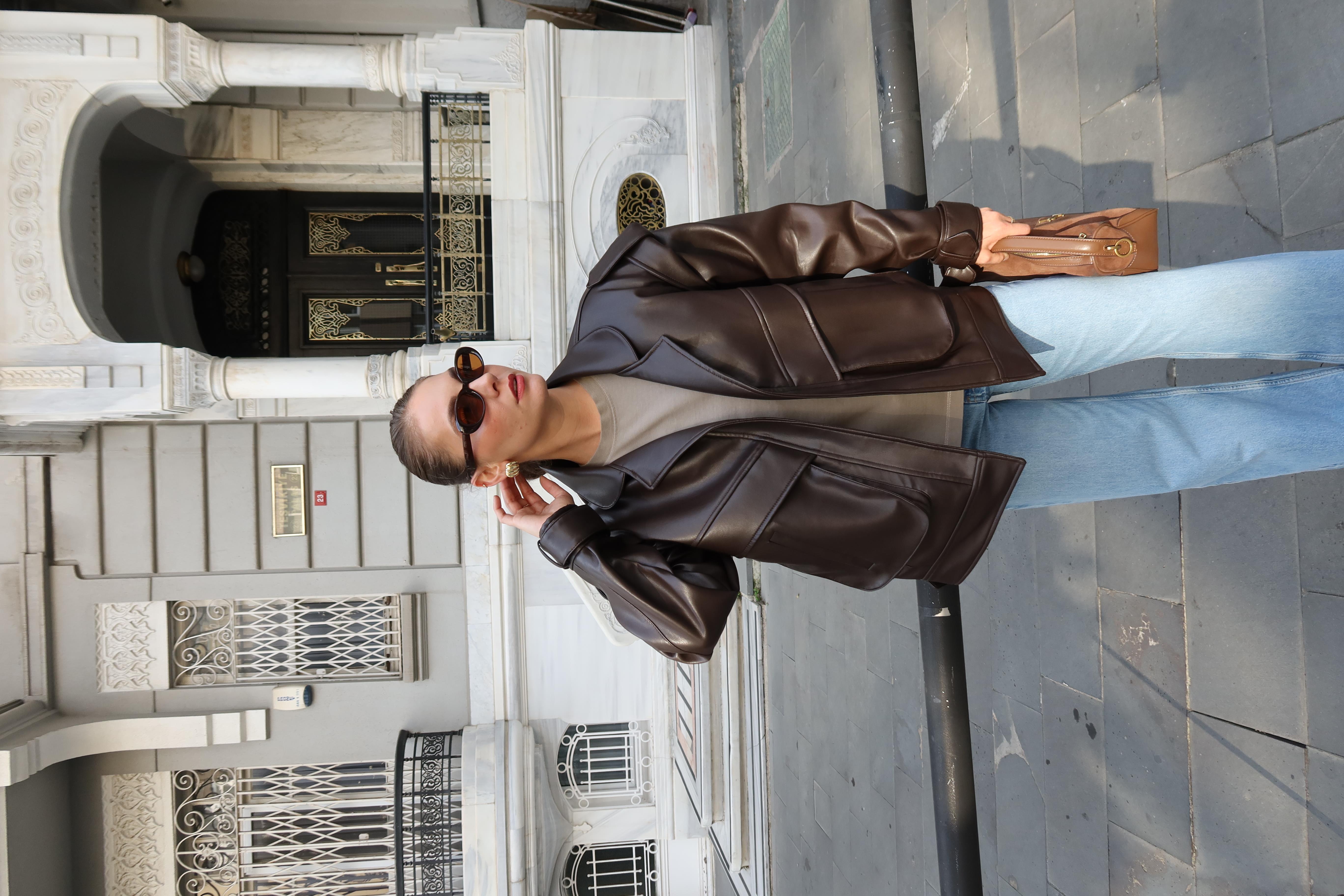 Acı Kahve Önden Süs Cepli Apolet Ve Kemer Detaylı Tasarım Ceket (115-00638)