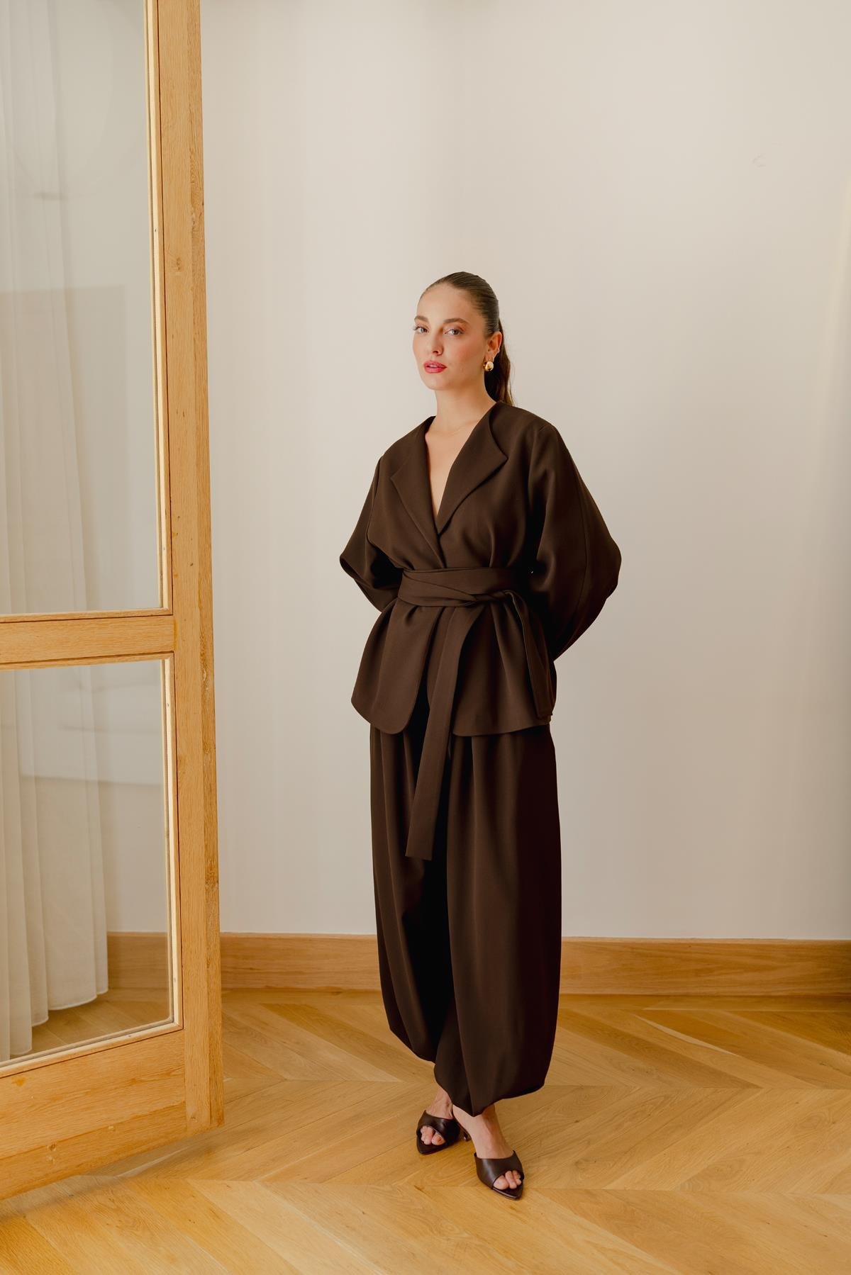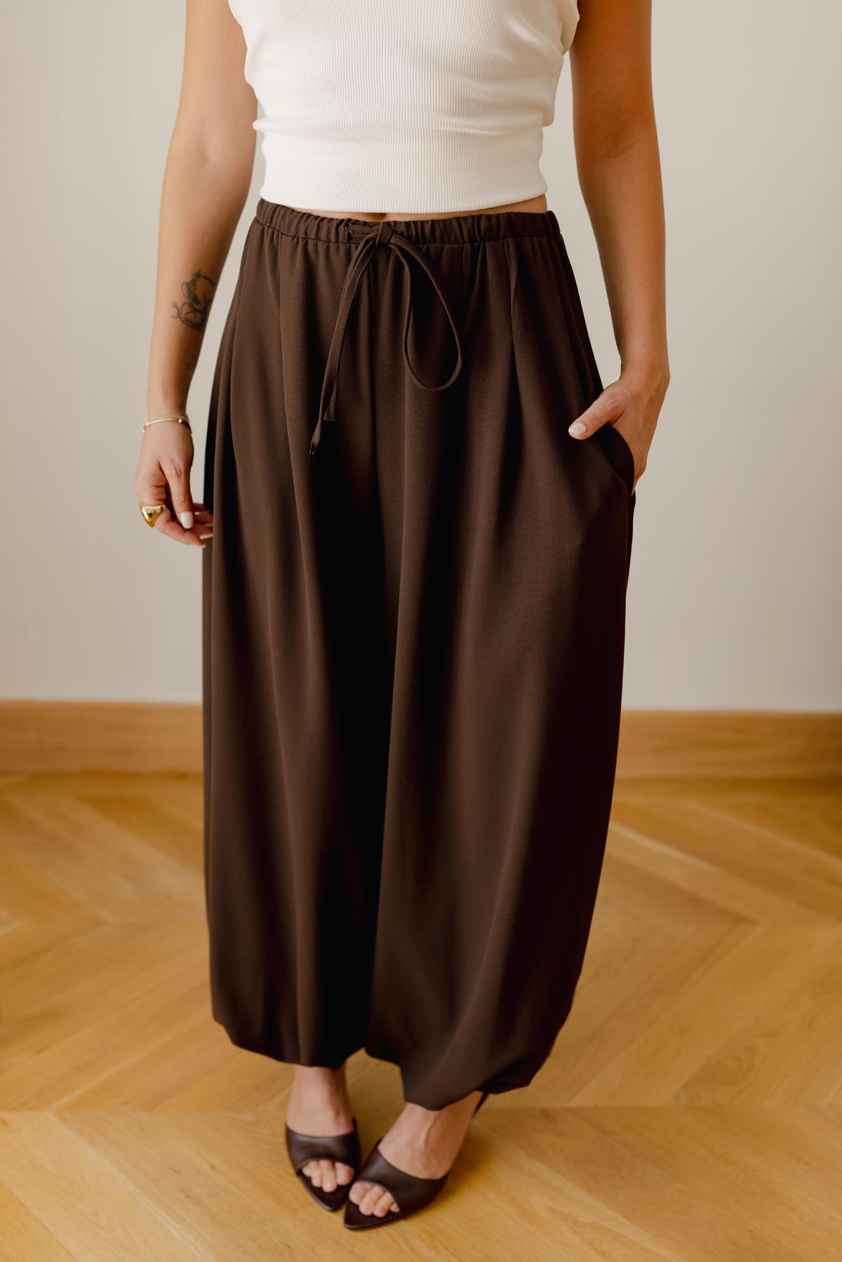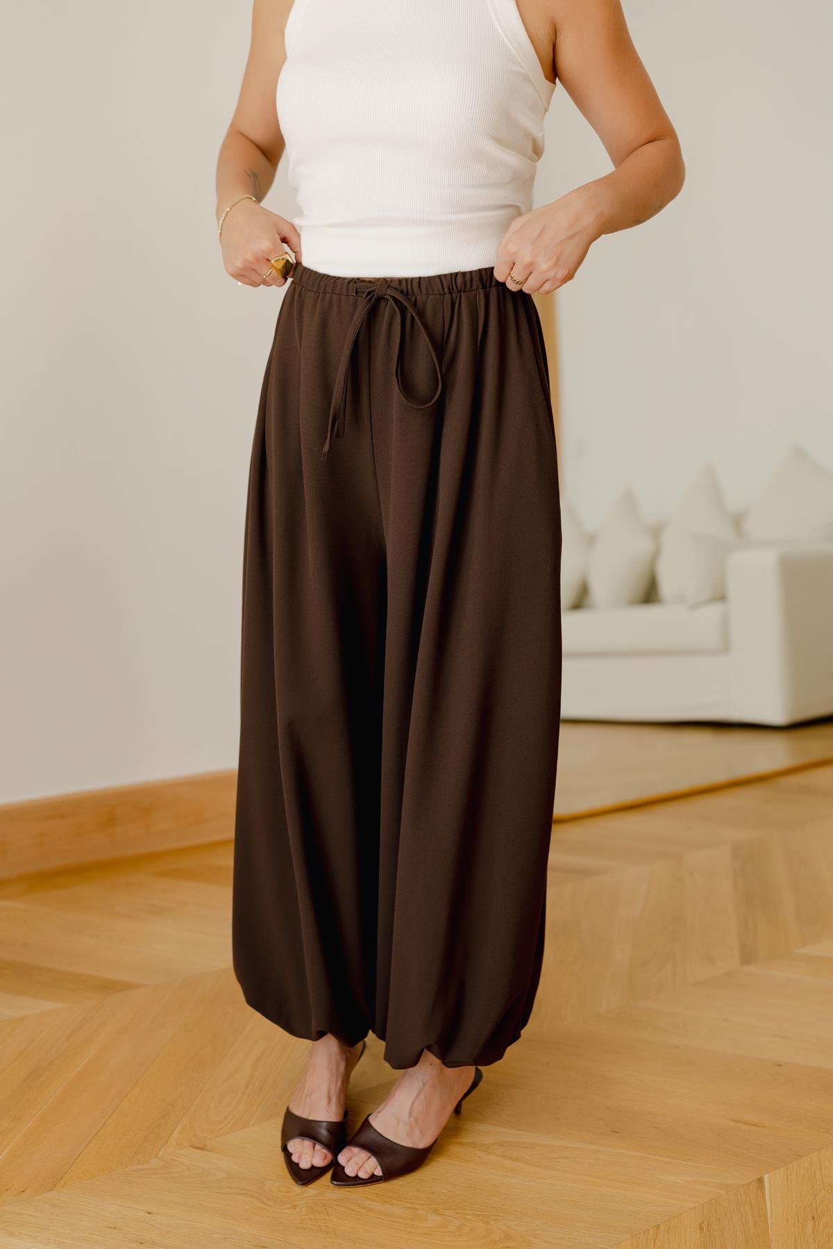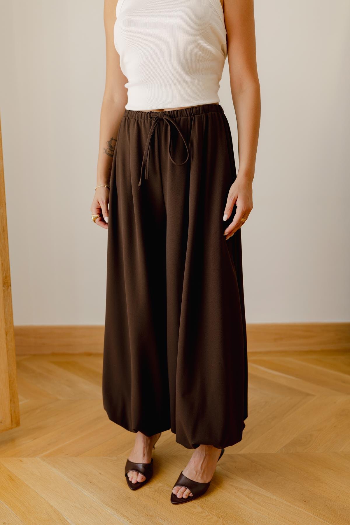 Acı Kahve Paçası Ve Beli Lastikli Şalvar Pantolon (110-00755)