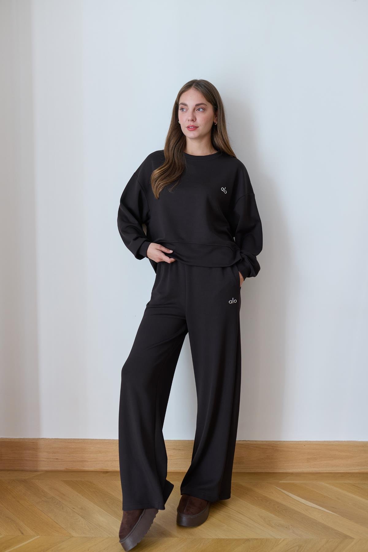 Siyah Yazı Baskılı Crop Sweat Pantolon Eşofman Takım Antrasit Yazı Baskılı Crop Sweat Pantolon Eşofman Takım Acı Kahve Yazı Baskılı Crop Sweat Pantolon Eşofman Takım