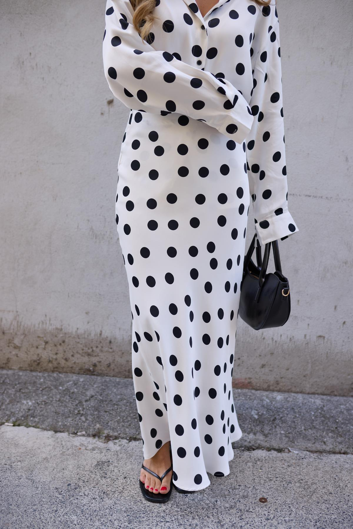 Beyaz Beli Lastikli Puantiyeli Saten Etek (109-00471)