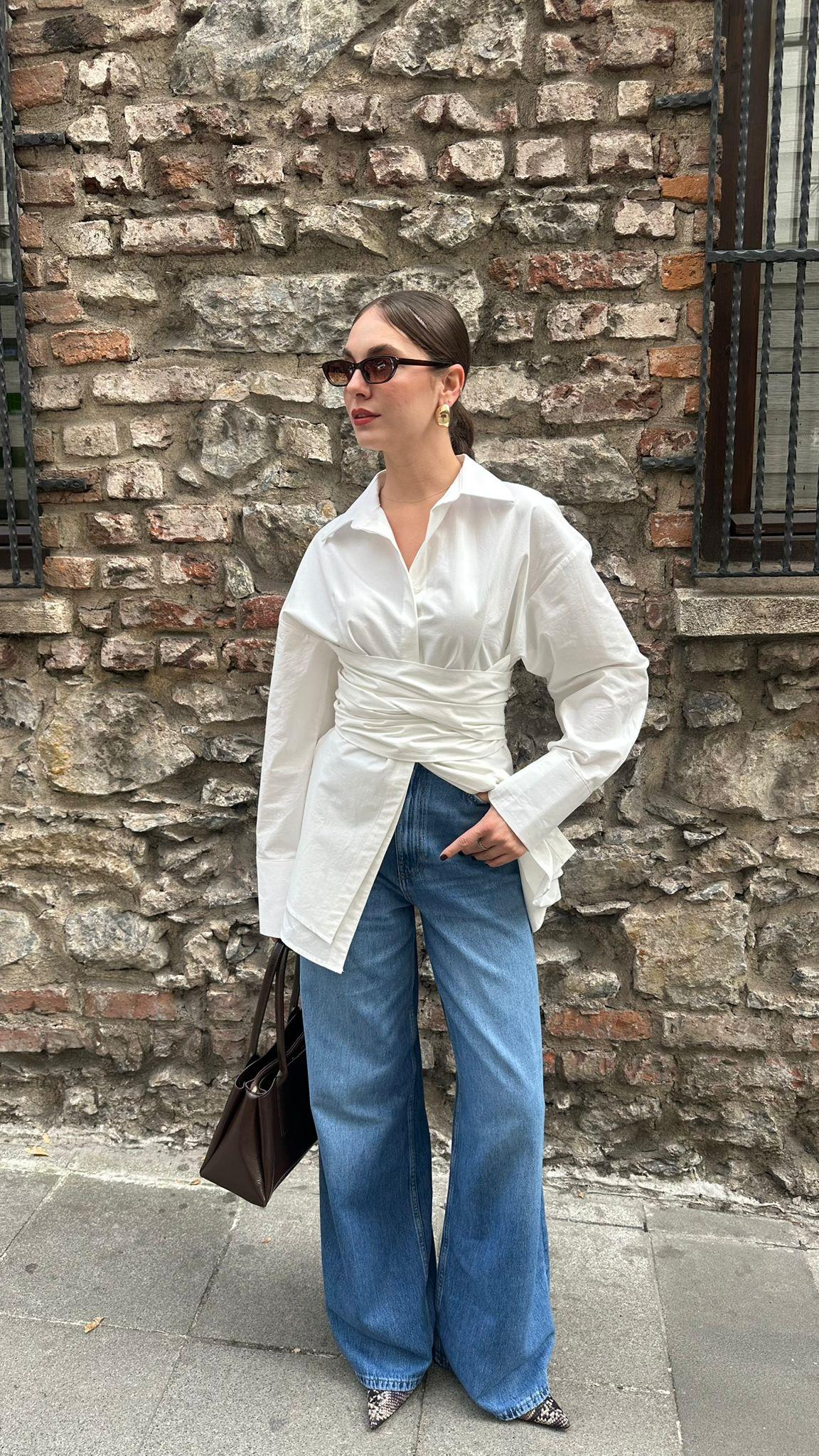 Siyah Kopçalı Kemer Detaylı Gömlek Beyaz Kopçalı Kemer Detaylı Gömlek Kahve Kopçalı Kemer Detaylı Gömlek