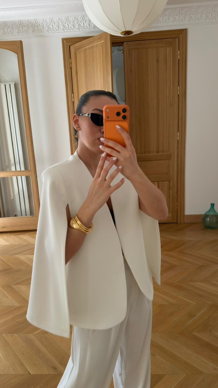 Beyaz Pelerin Detaylı Blazer Ceket (115-00706)
