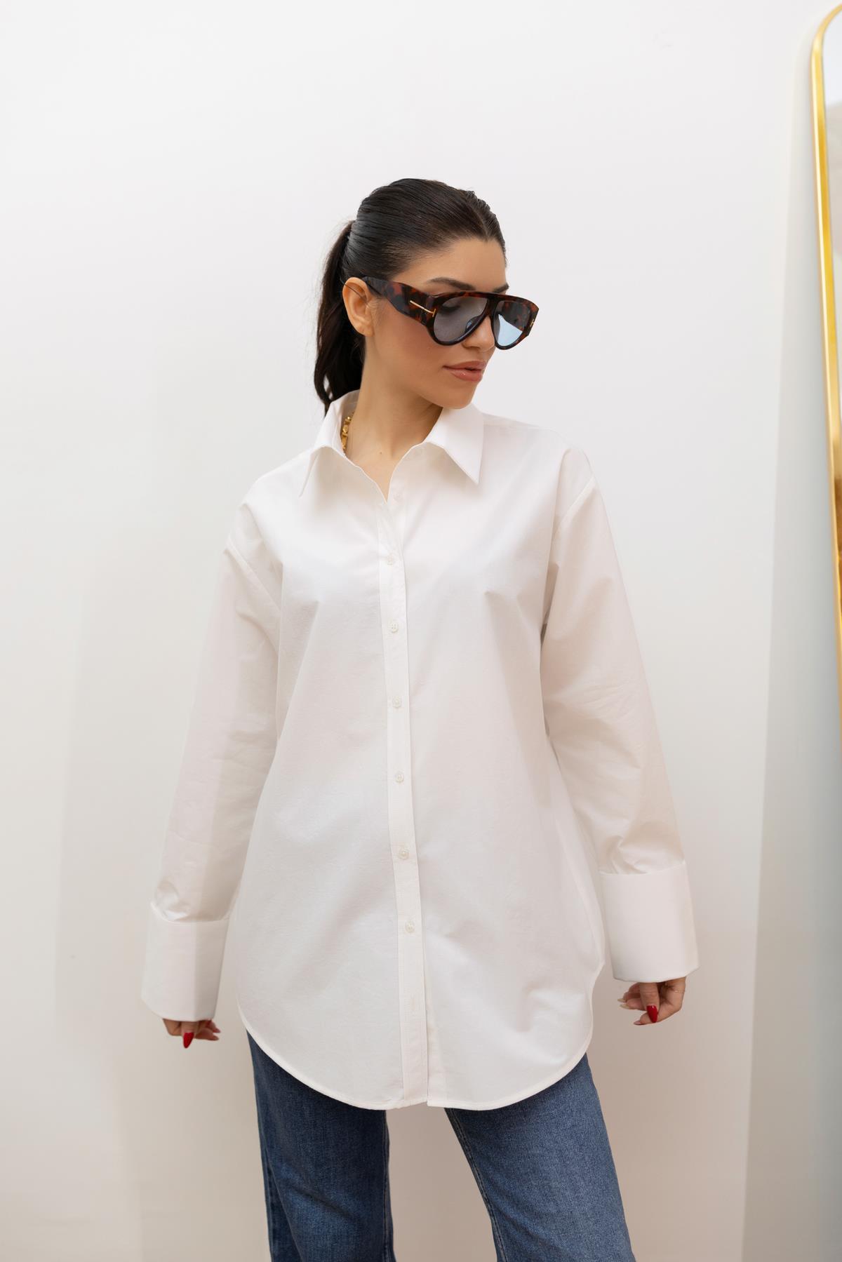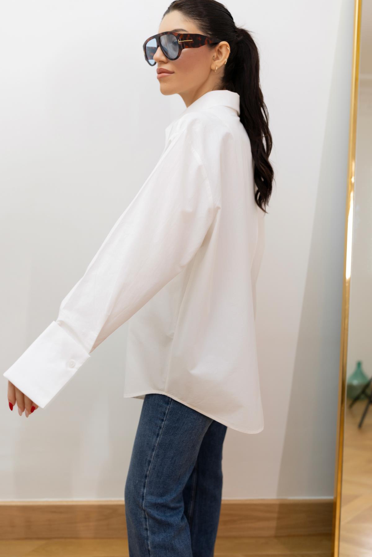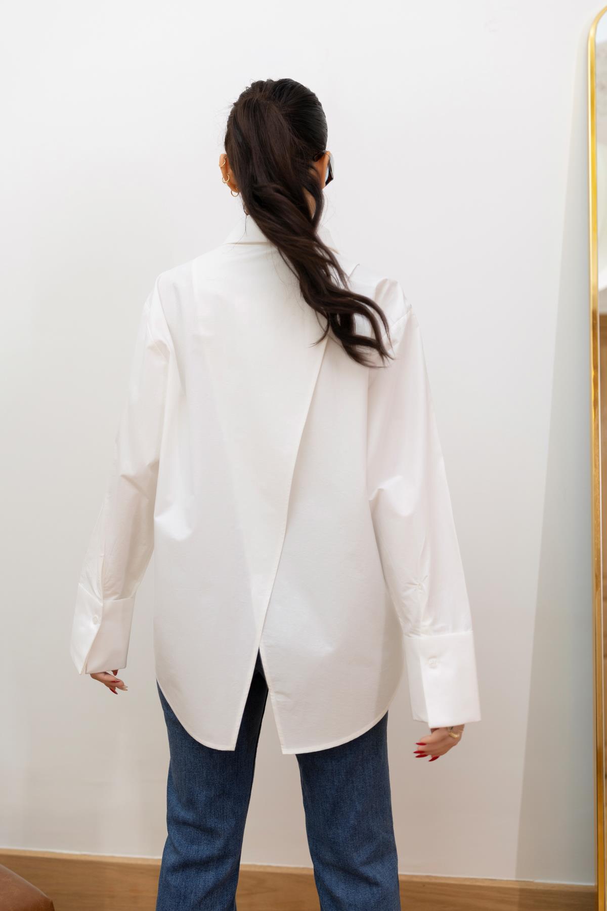 Beyaz Sırt Dekolteli Oversize Gömlek (103-00756)