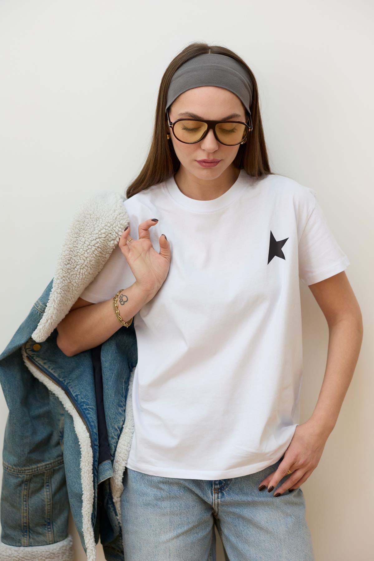 Beyaz Yıldız Baskılı Basic T-Shirt Siyah Yıldız Baskılı Basic T-Shirt