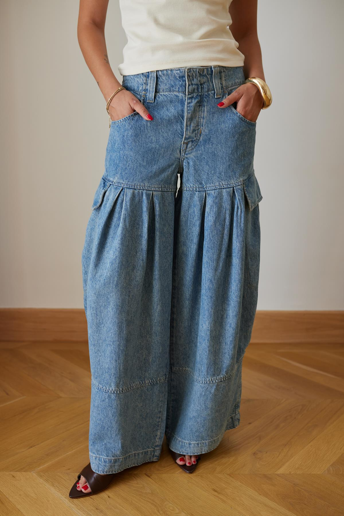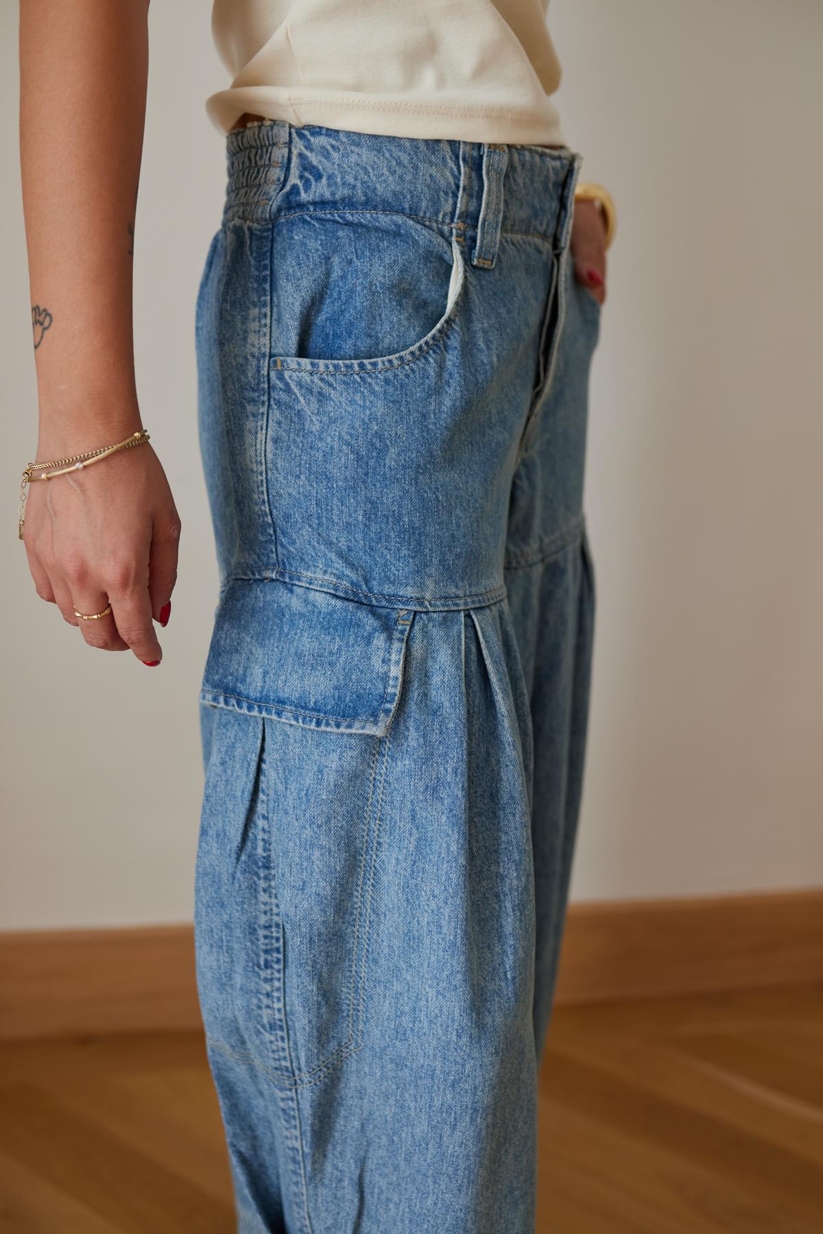Buz Mavi Pile Ve Cep Detaylı Tasarım Jean Pantolon