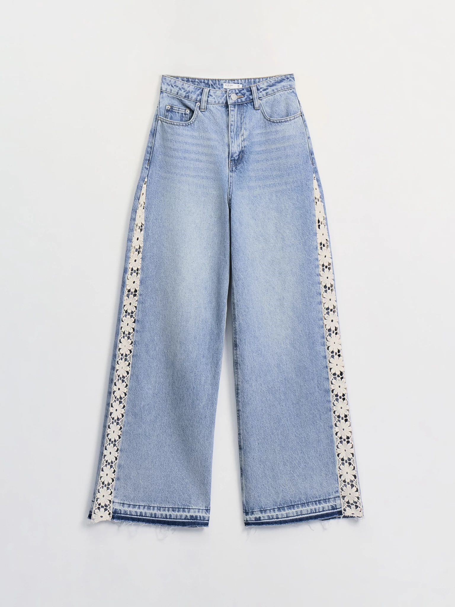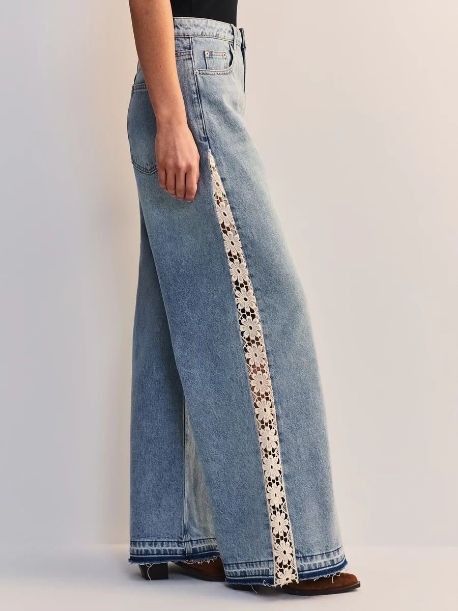 Buz Mavi Yanlardan Dantelli Taşlamalı Tasarım Jean Pantolon