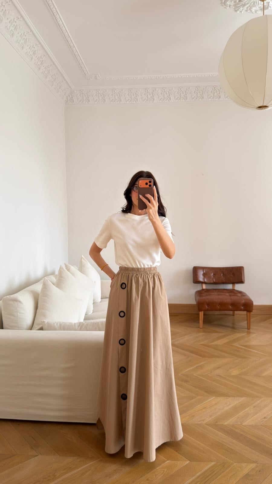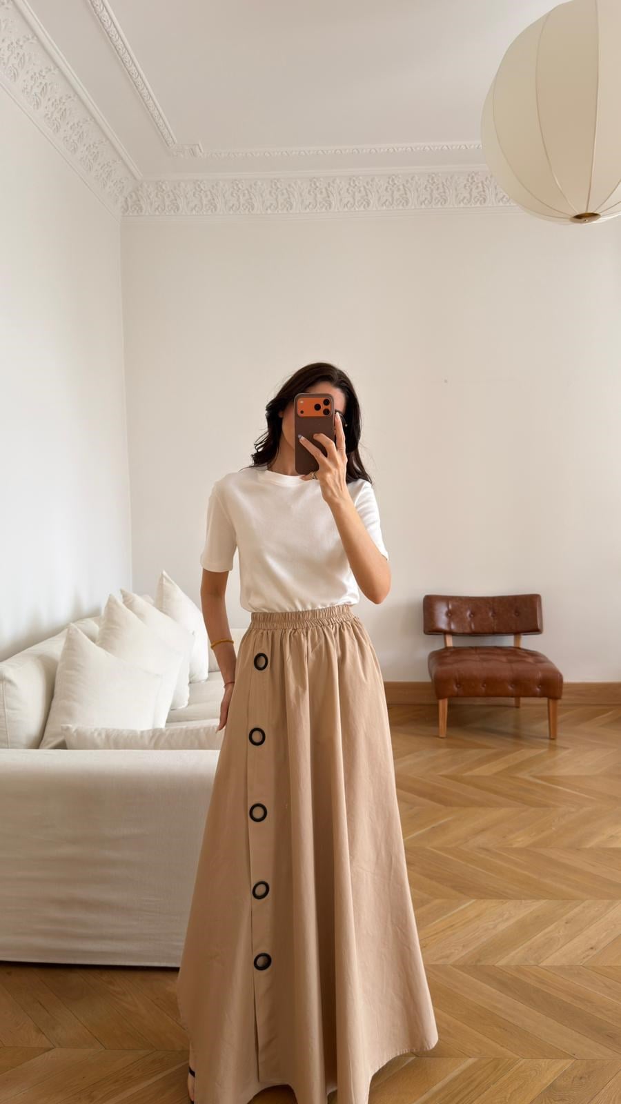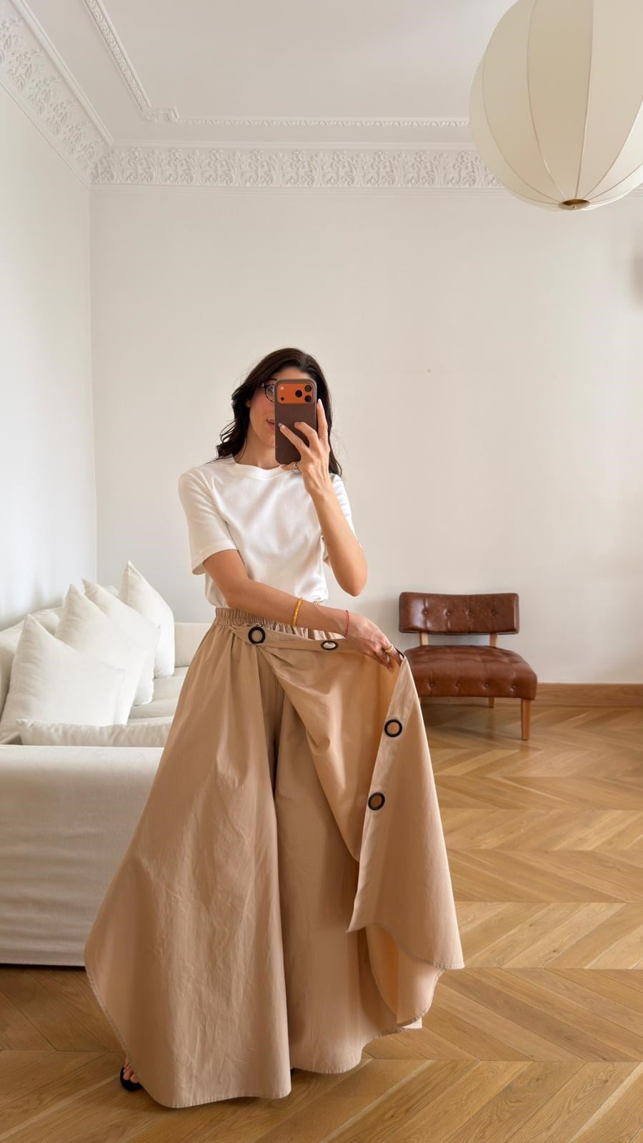 Camel Beli Lastikli Kuş Gözü Detaylı Etek  Pantolon Taş Beli Lastikli Kuş Gözü Detaylı Etek  Pantolon