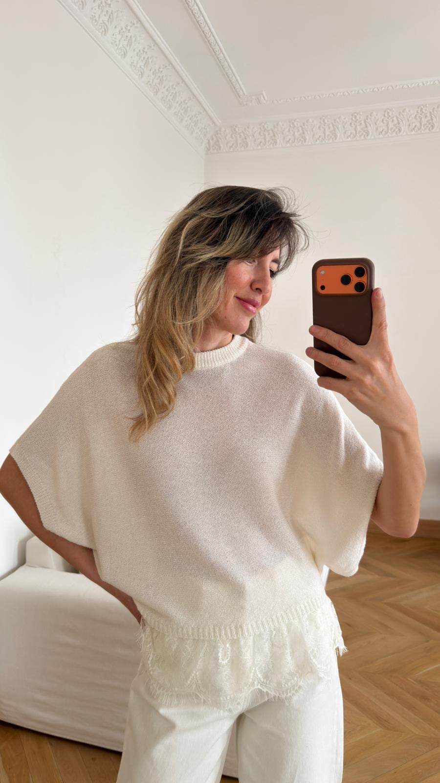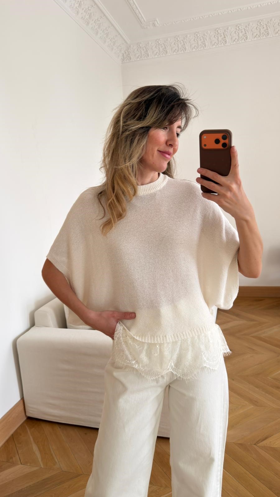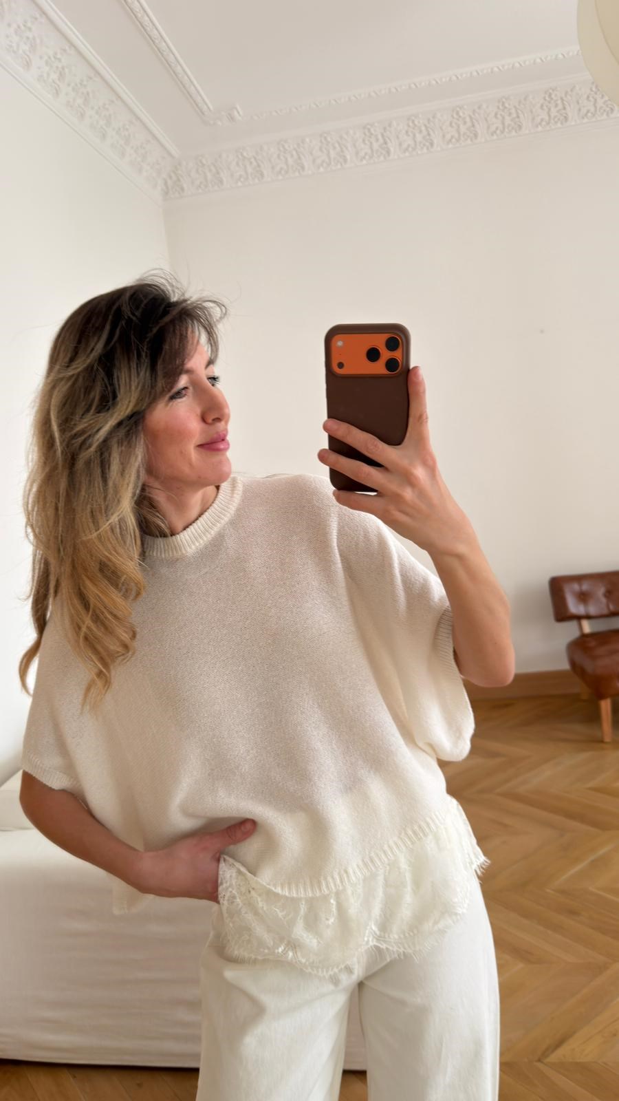 Ekru Dantel Detaylı Mevsimlik Triko (108-00796)