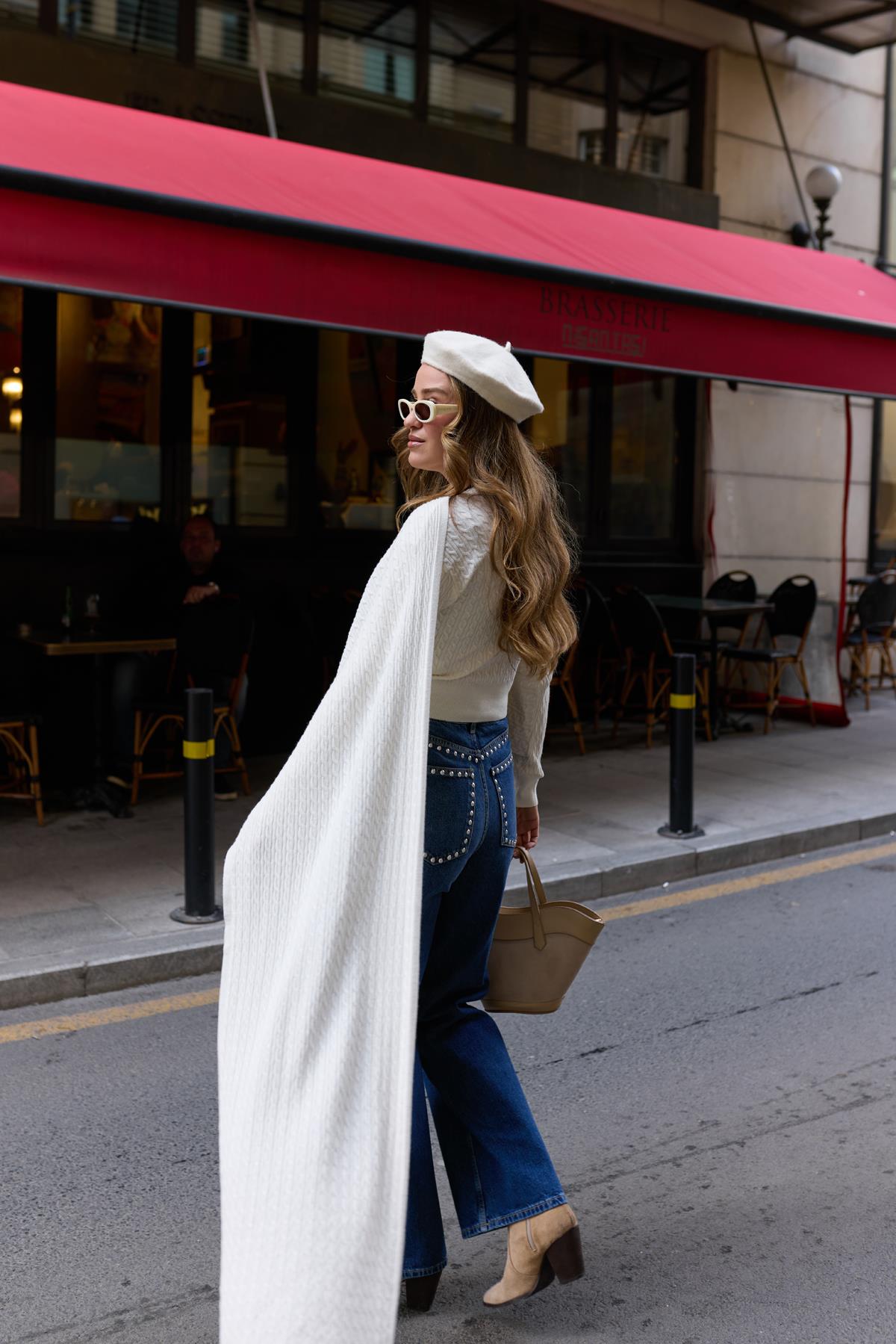 Ekru Şal Detaylı Örgü Kazak (108-00708)