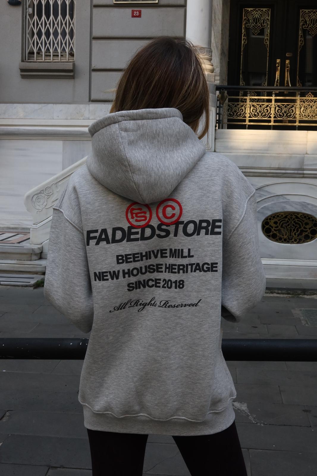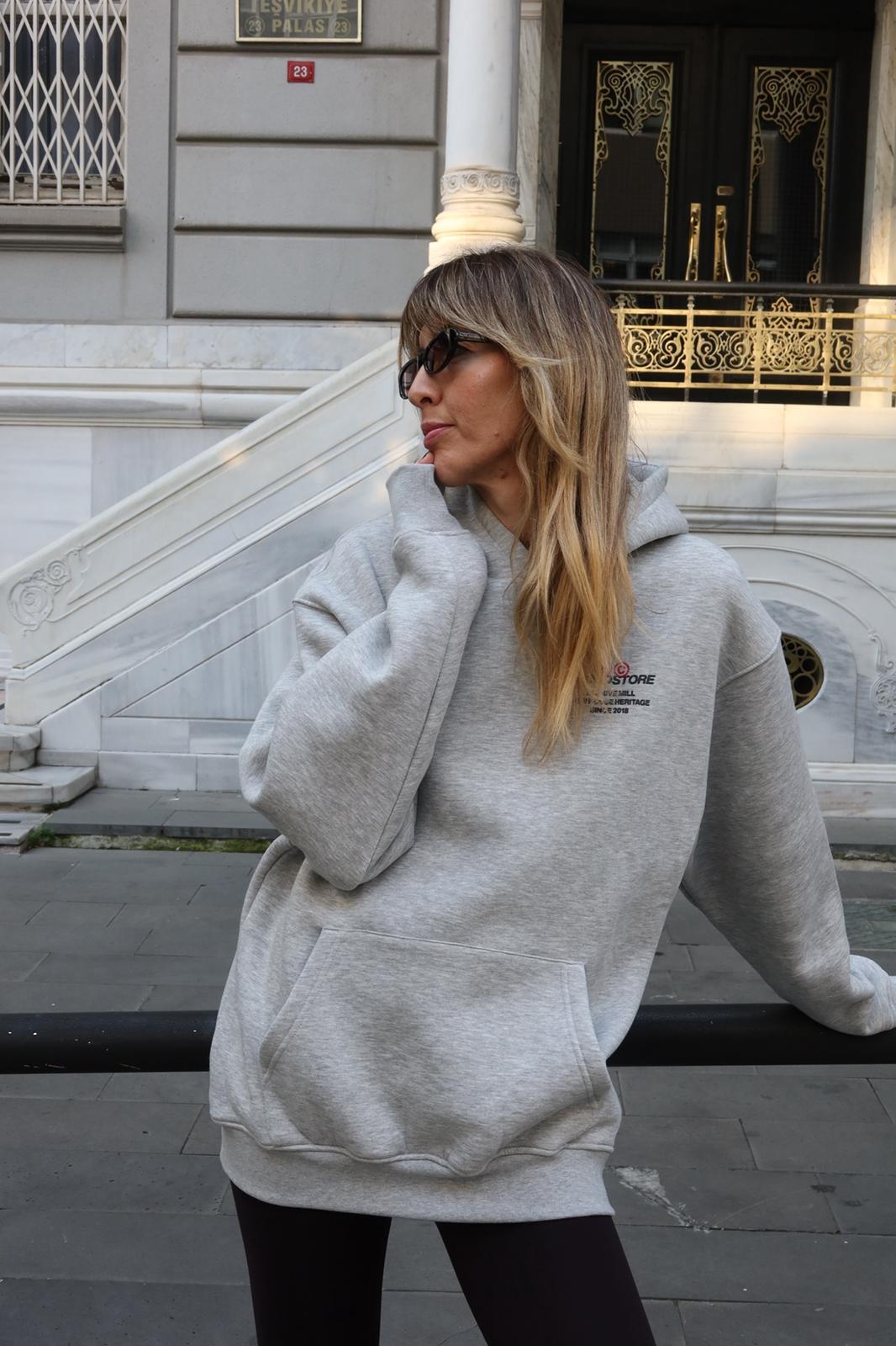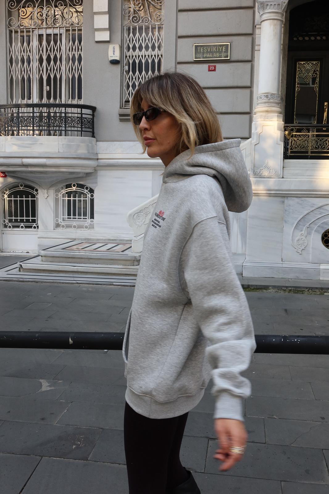 Gri Önden Ve Arkadan Yazı Detaylı Kapşonlu Sweat (106-00319)