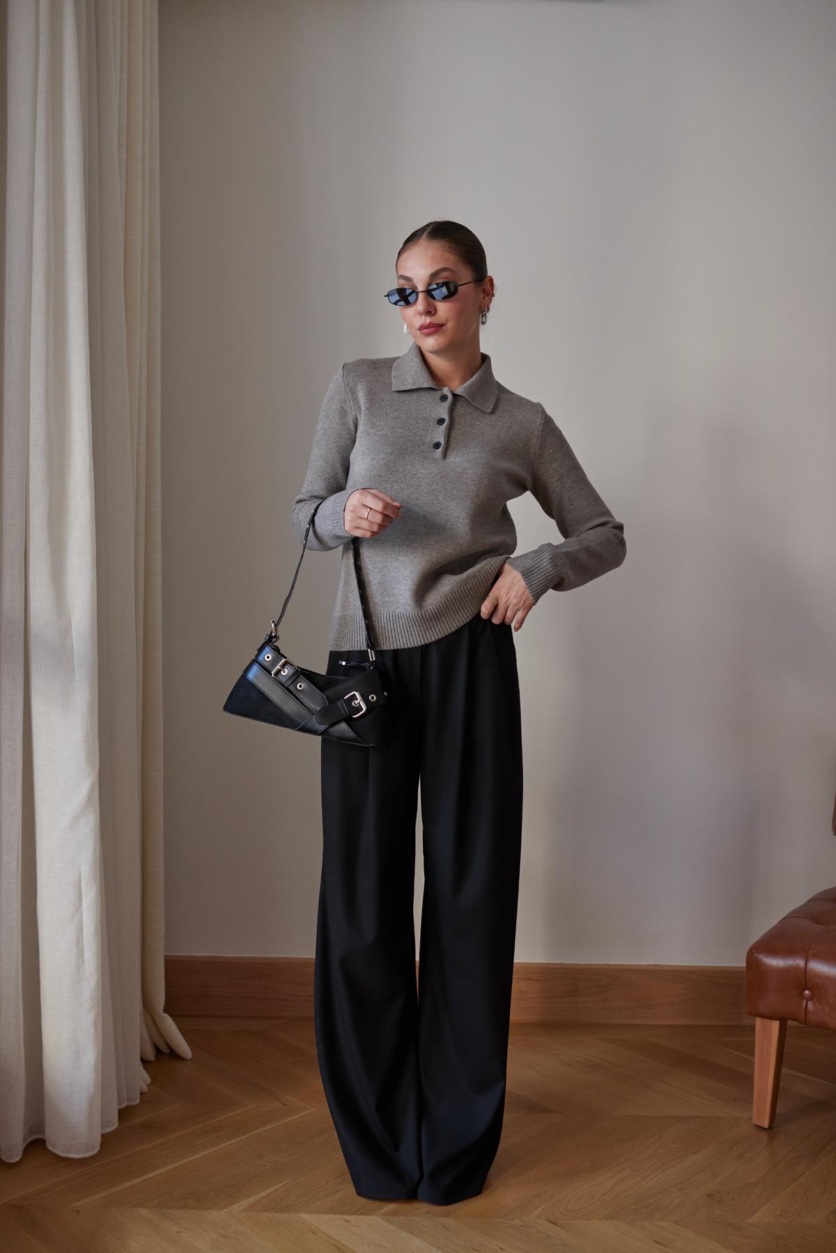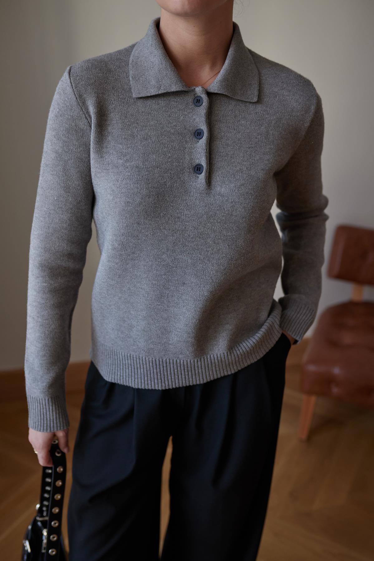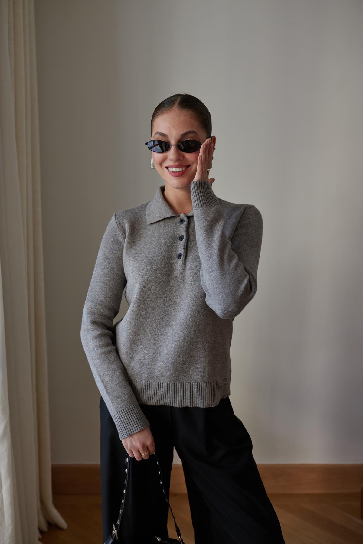 Gri Polo Yaka 3 Düğmeli Triko (108-00636)