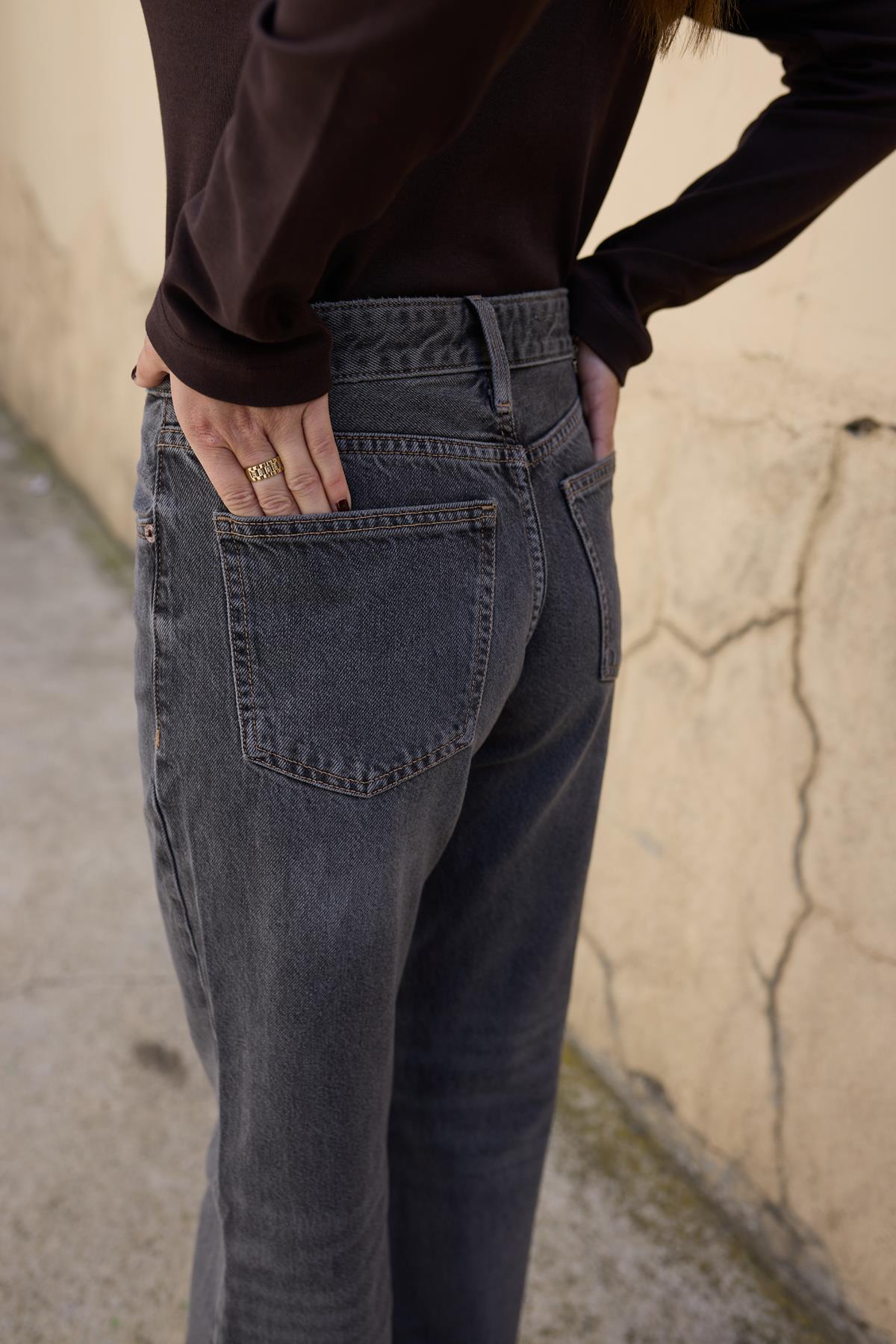 Gri Yüksek Bel Taşlamalı Denim Pantolon (114-00619)