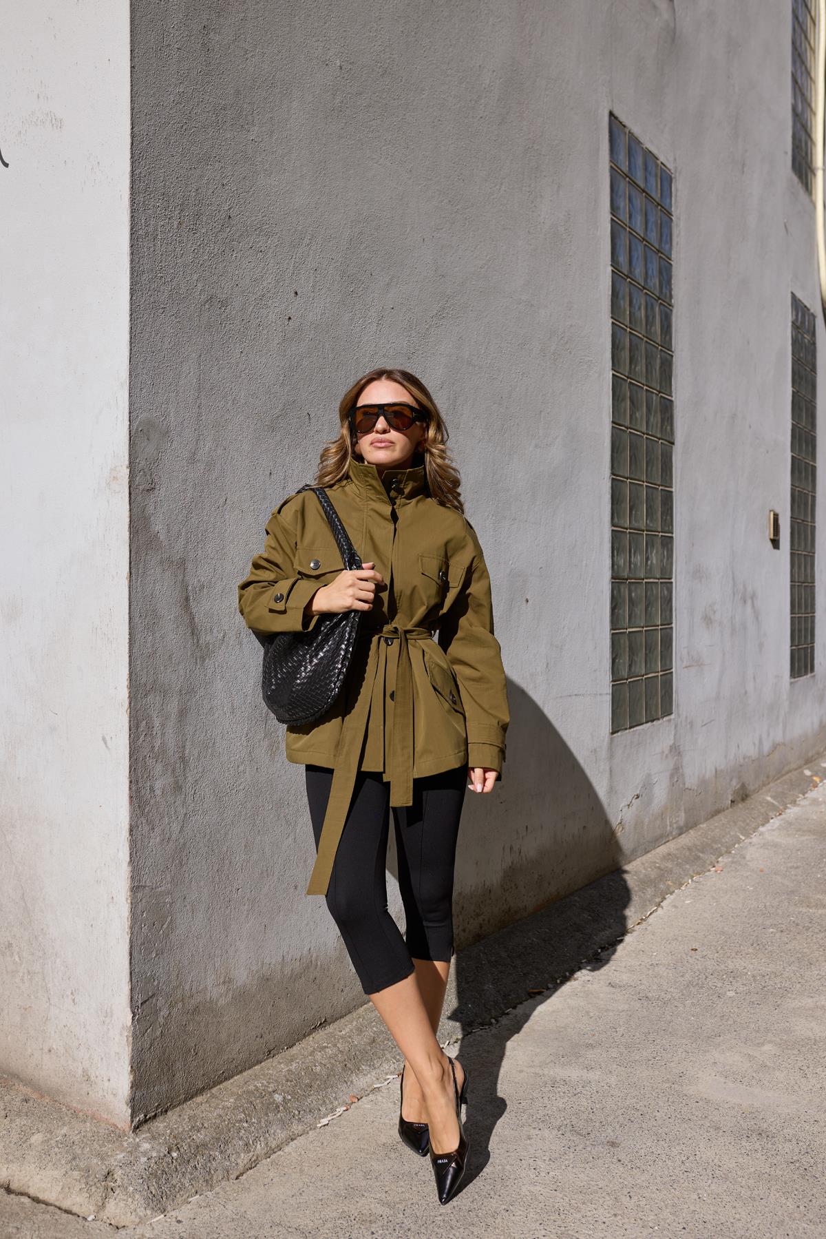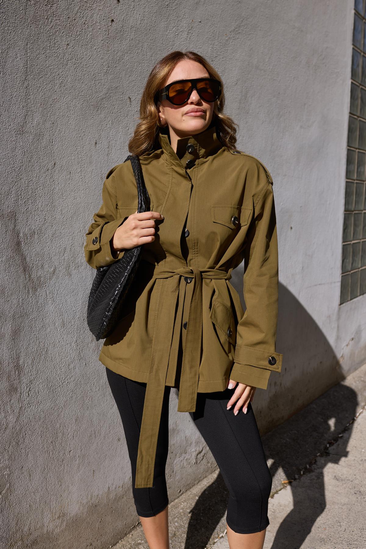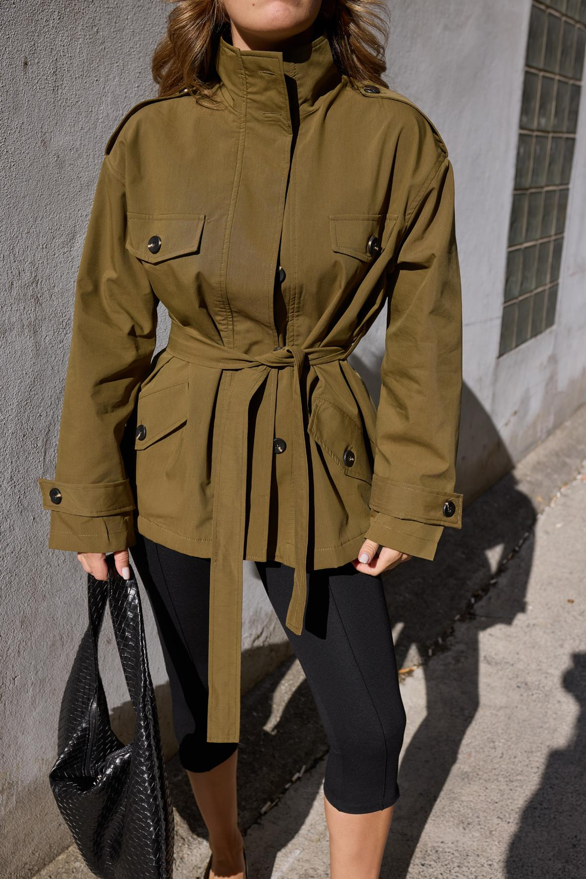 Haki Dik Yakaa Yandan Cepli Kuşaklı Trençkot (123-00069)