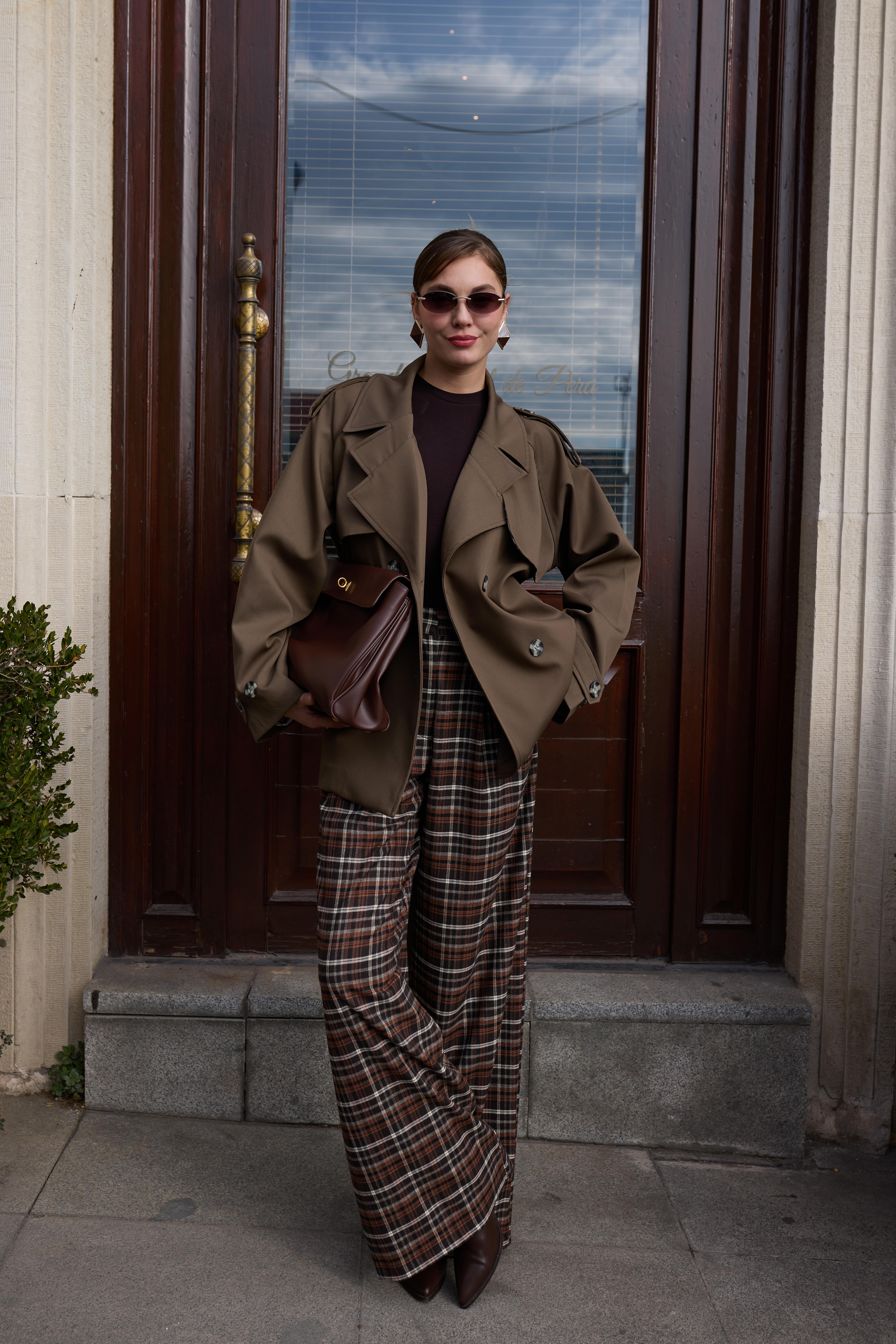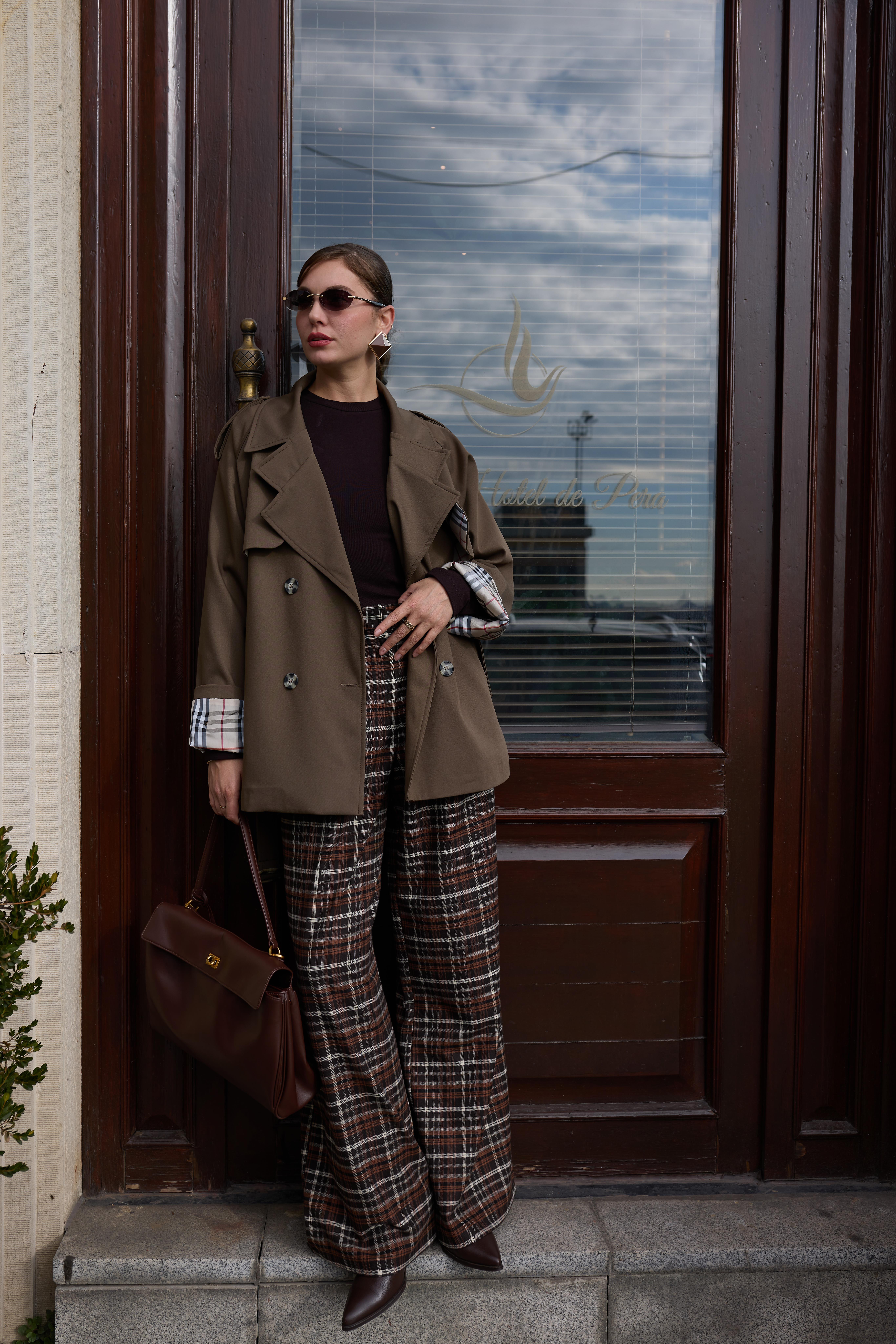 Haki İçi Ekose Astarlı Apolet Detaylı Kemik Düğmeli Trençkot Taş İçi Ekose Astarlı Apolet Detaylı Kemik Düğmeli Trençkot