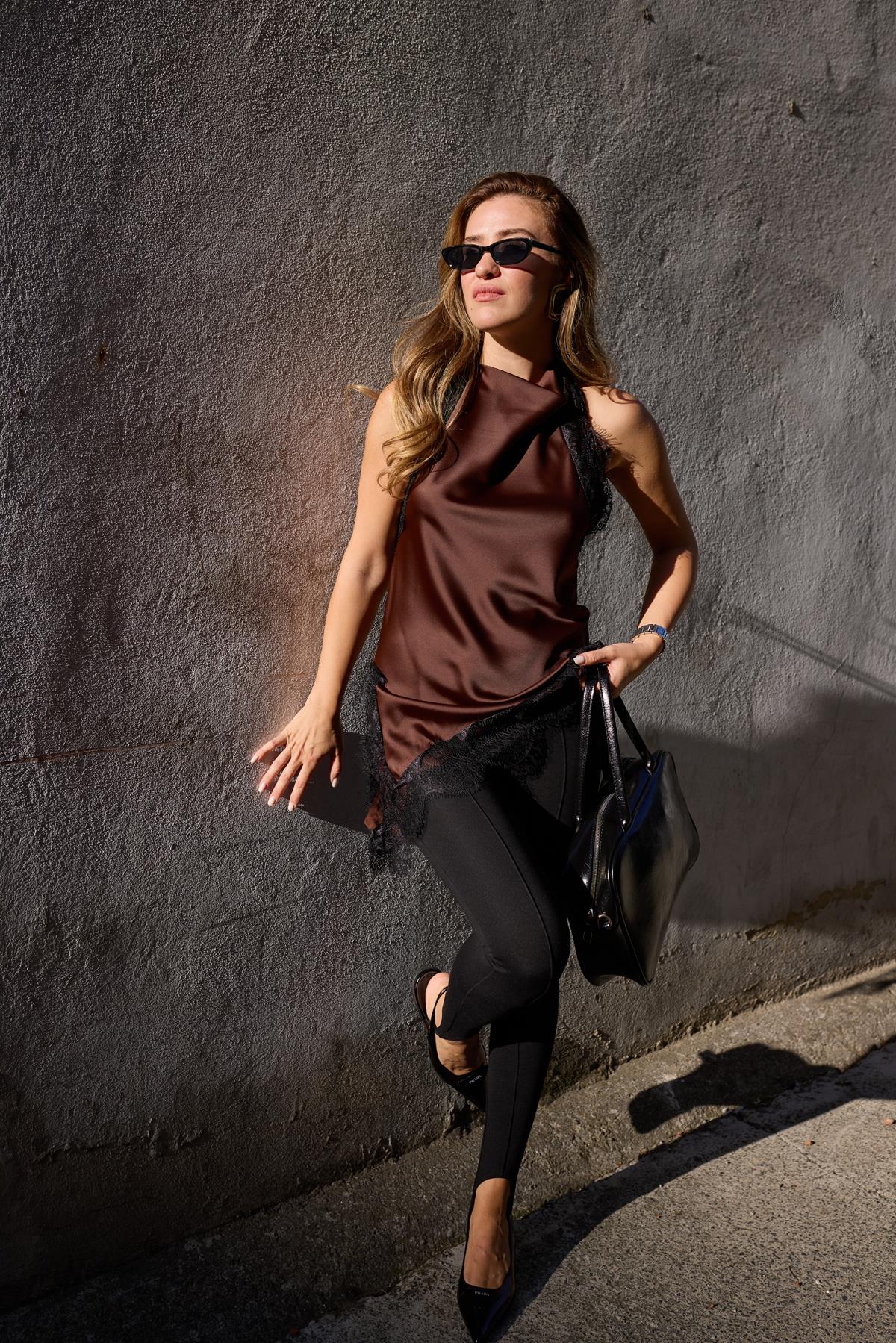Siyah Asimetrik Kesim Sırt Dekolteli Enseden Düğme Detaylı Dantelli Saten Bluz Kahve Asimetrik Kesim Sırt Dekolteli Enseden Düğme Detaylı Dantelli Saten Bluz