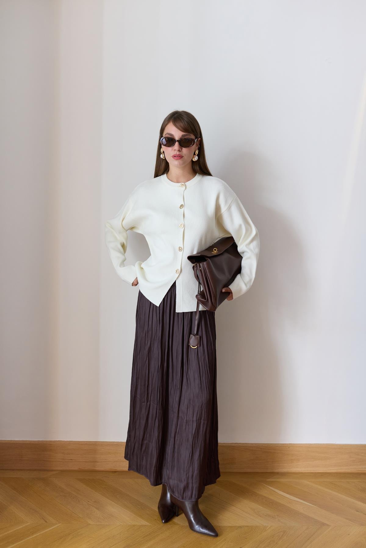 Kahve Beli Lastikli Krinkıl Saten Etek (109-00469)