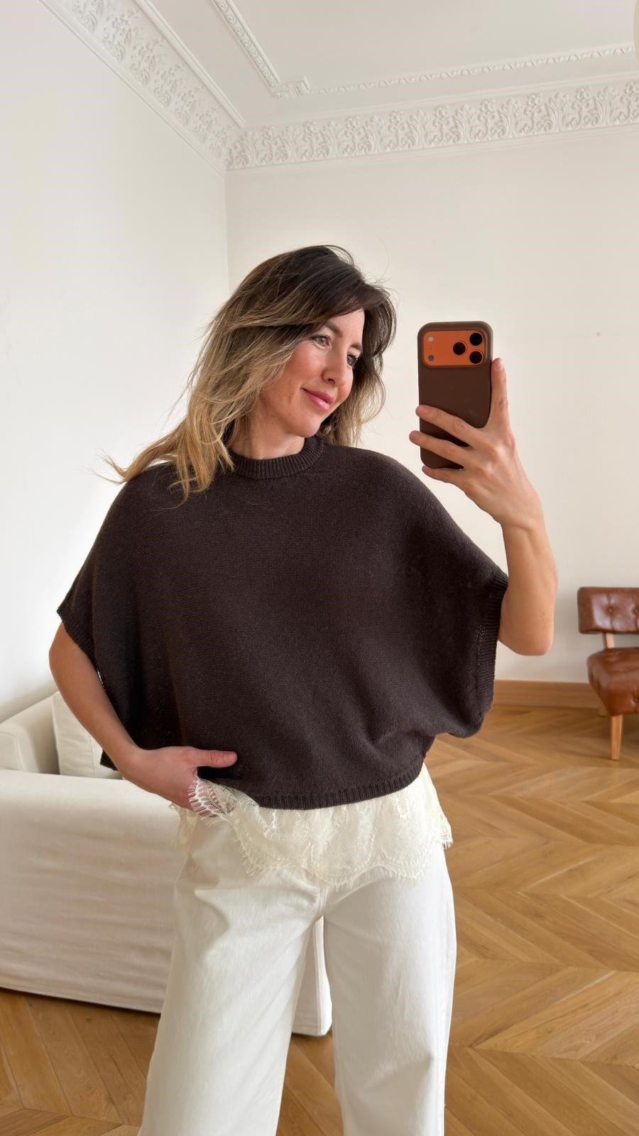 Kahve Dantel Detaylı Mevsimlik Triko (108-00796)