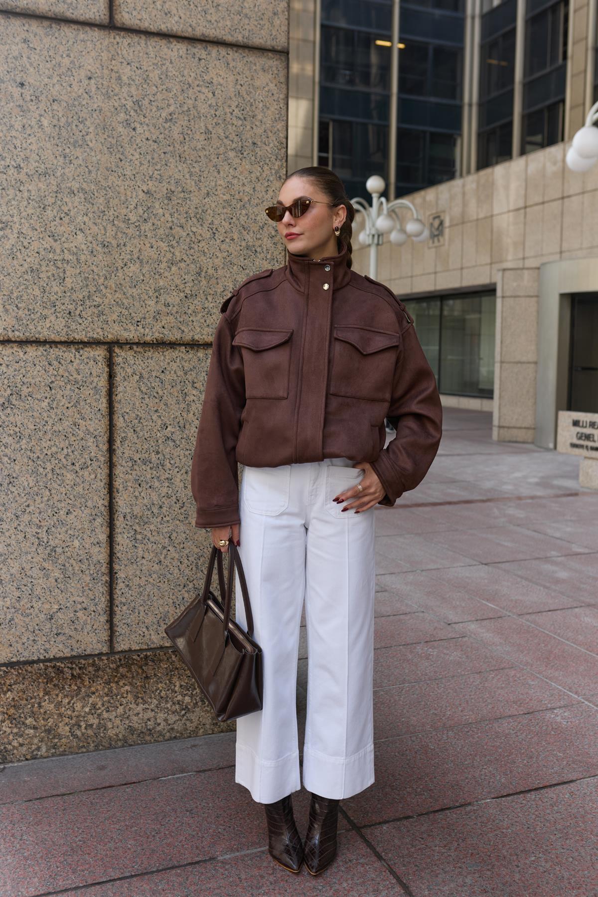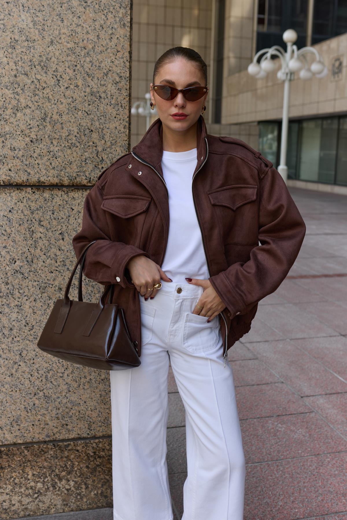 Kahve Dik Yaka Çıt Çıtlı Ve Fermuarlı Bomber Ceket (115-00658)