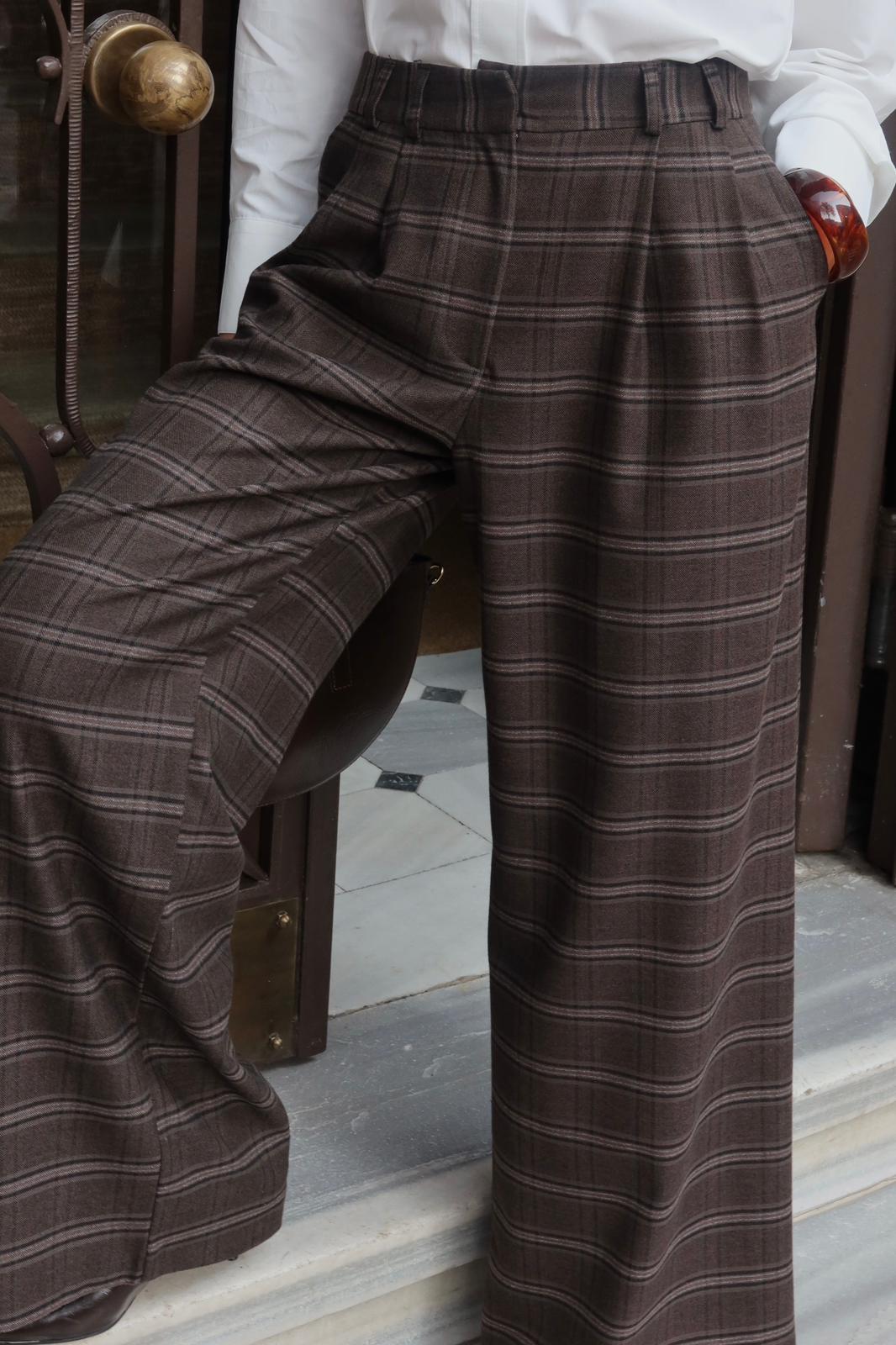 Siyah Ekoseli Palazzo Pantolon Kahve Ekoseli Palazzo Pantolon