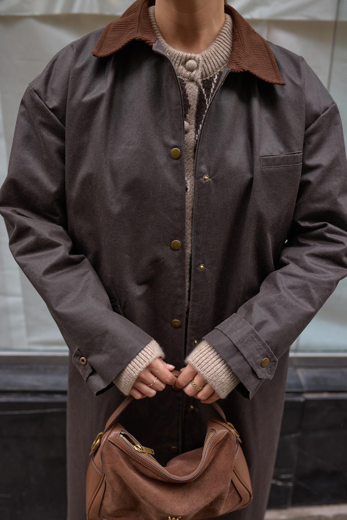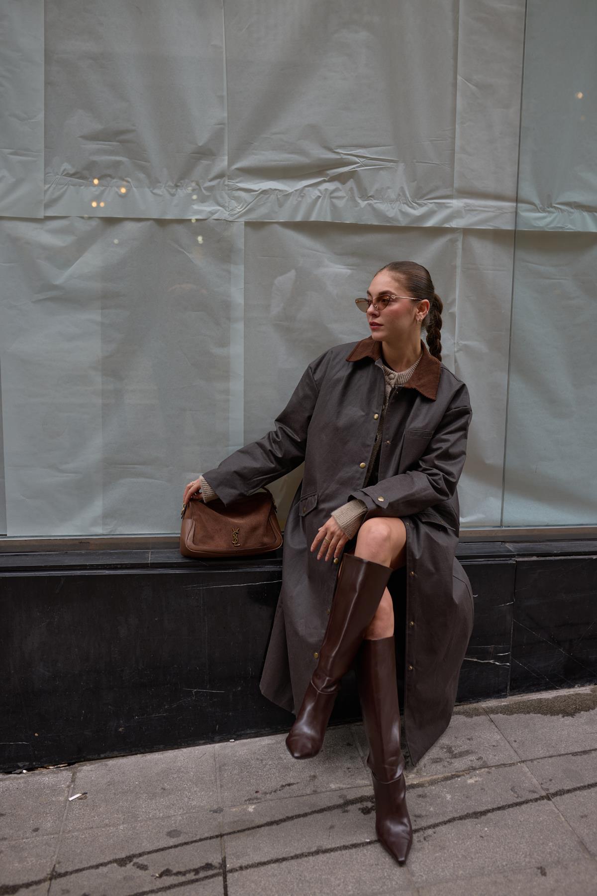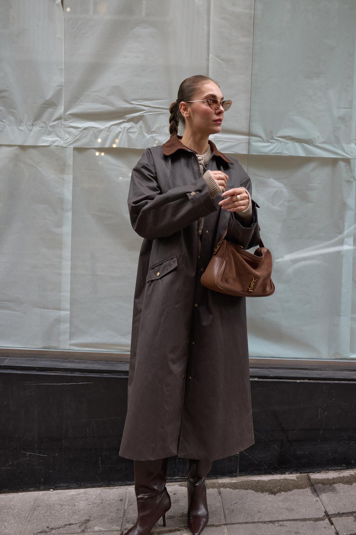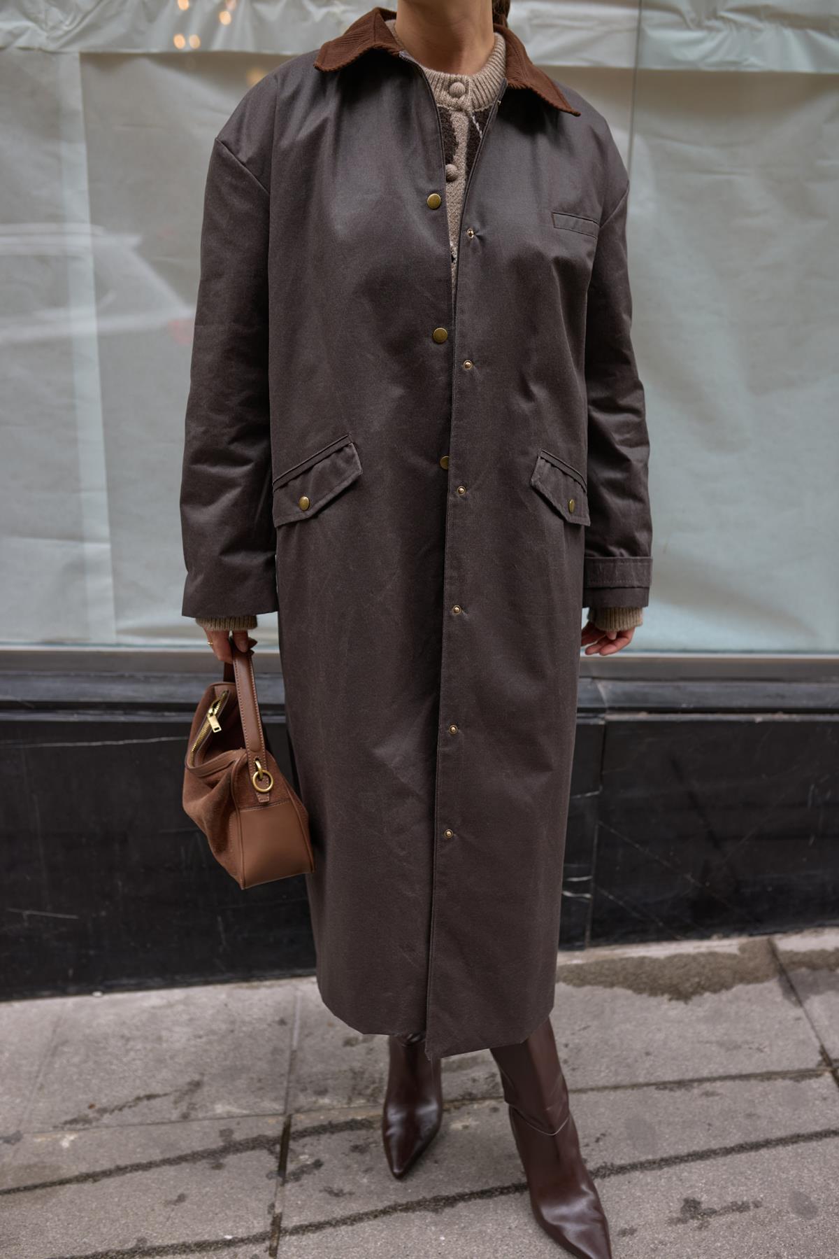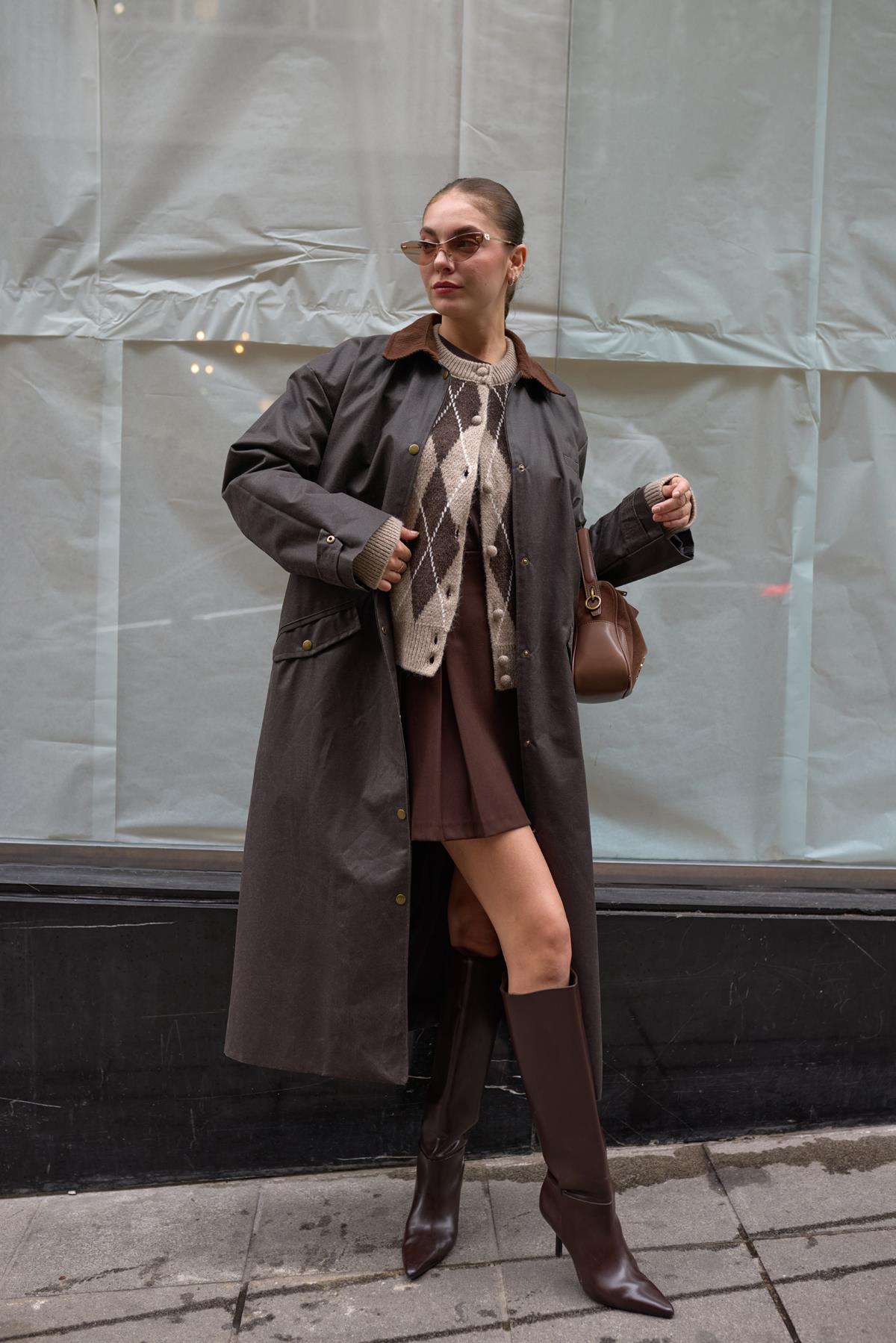 Haki Kadife Yaka Uzun Trençkot Kahve Kadife Yaka Uzun Trençkot