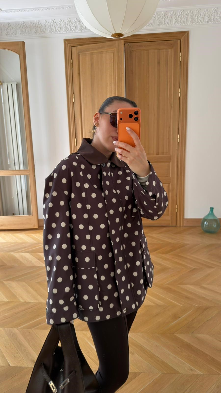 Kahve Önden Cep Detaylı Puantiyeli Ceket (115-00710)