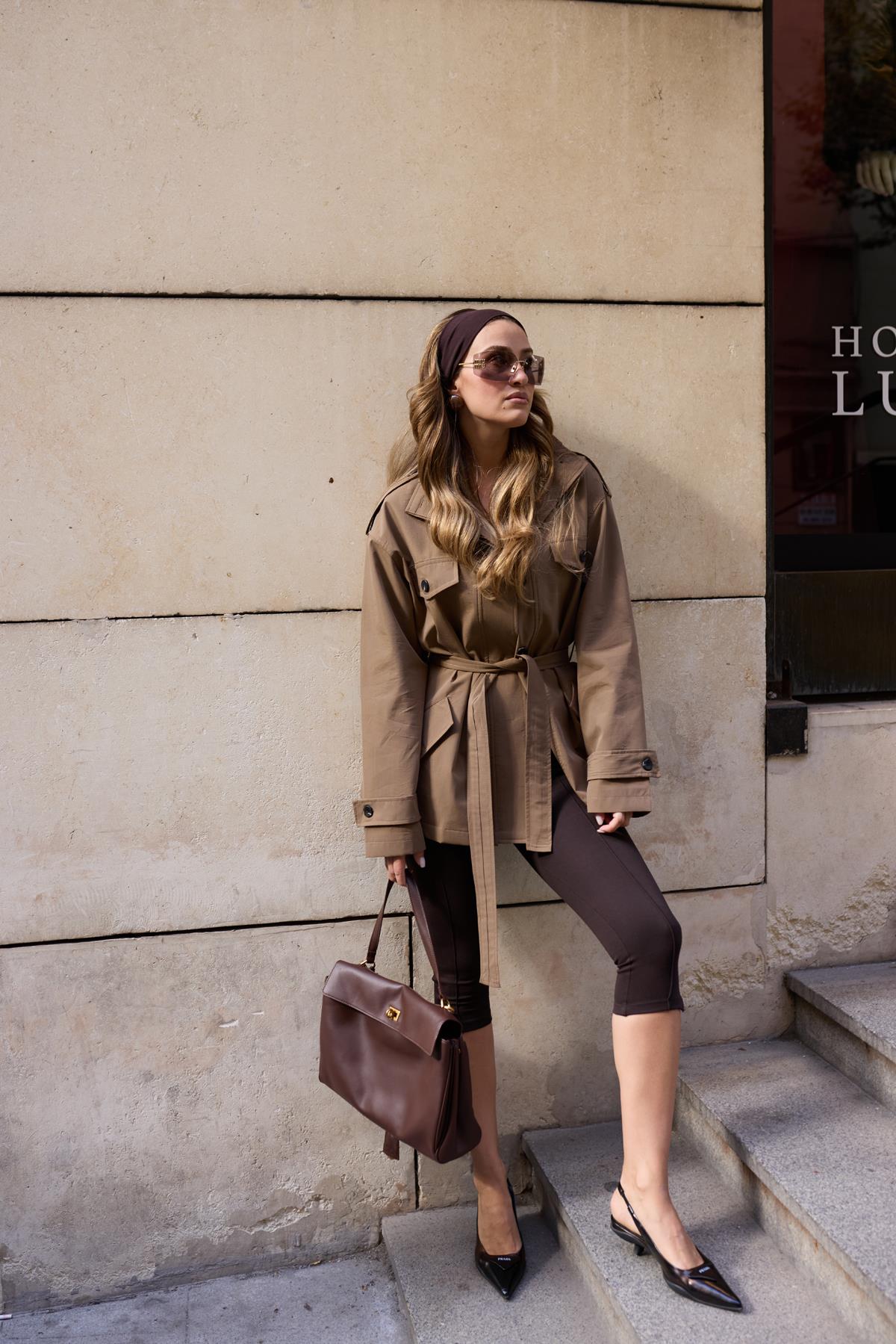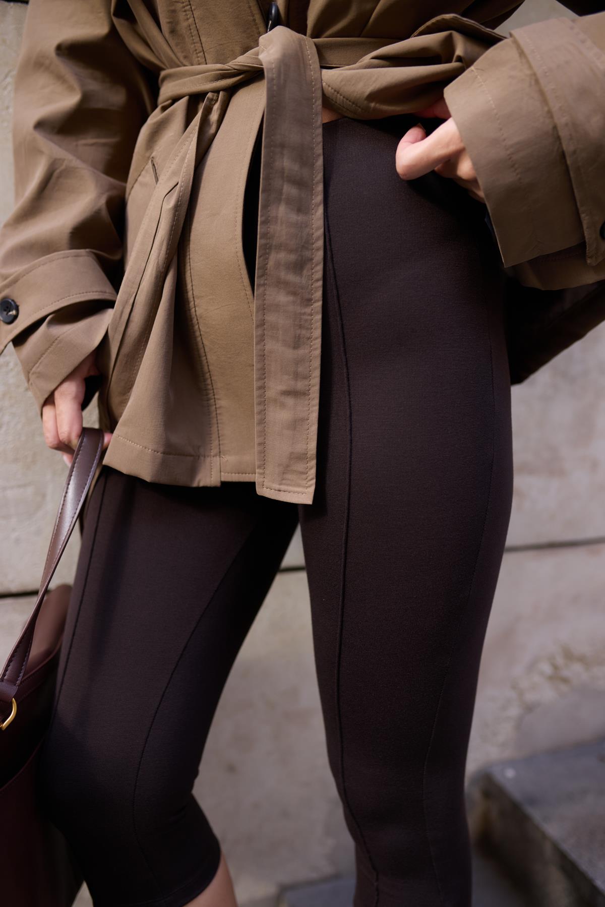 Kahve Önden Çizgi Detaylı Kapri Tayt (112-00062)