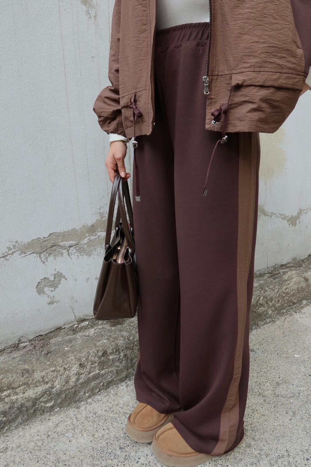 Kahve Parça Detaylı Fermuarlı Ve Çıt Çıtlı Sweat Eşofman Takım (122-00853)