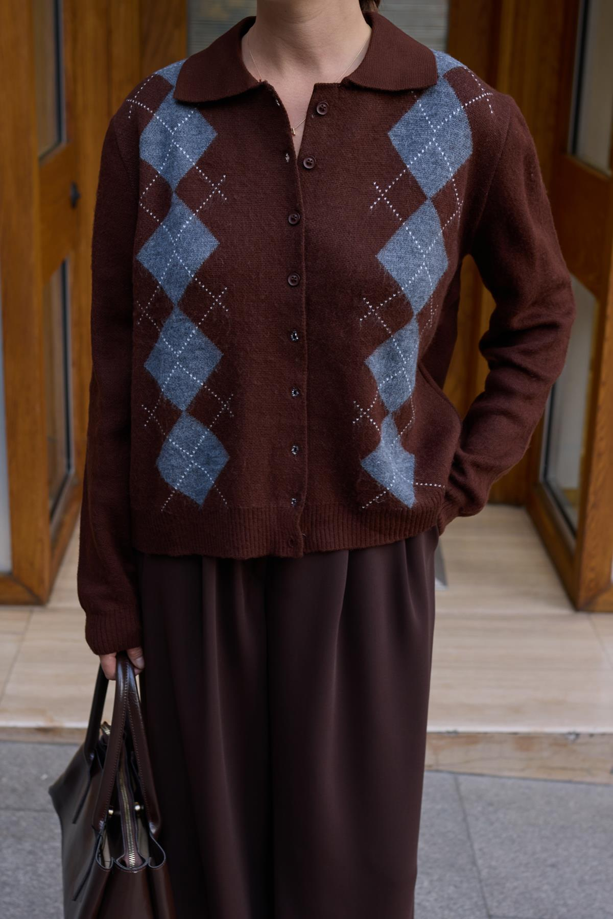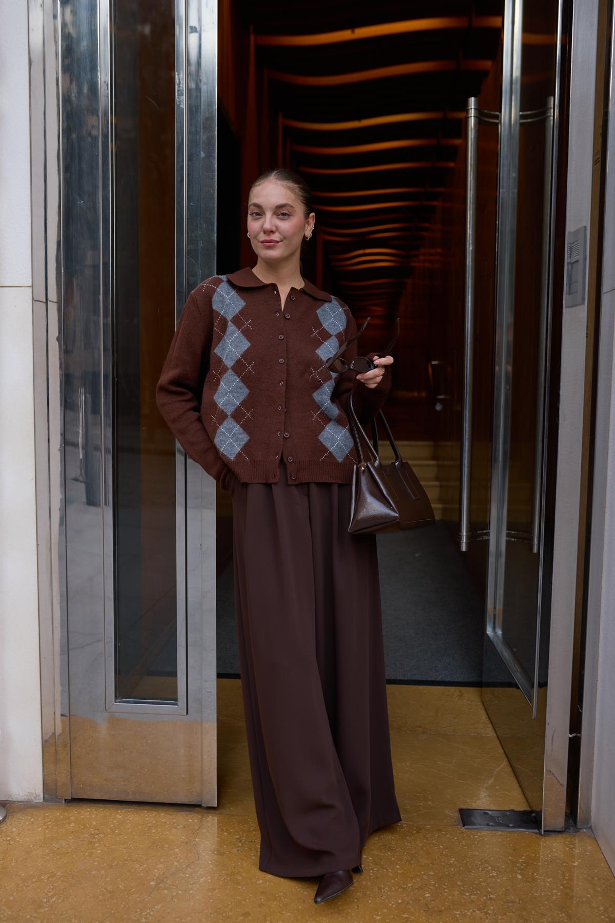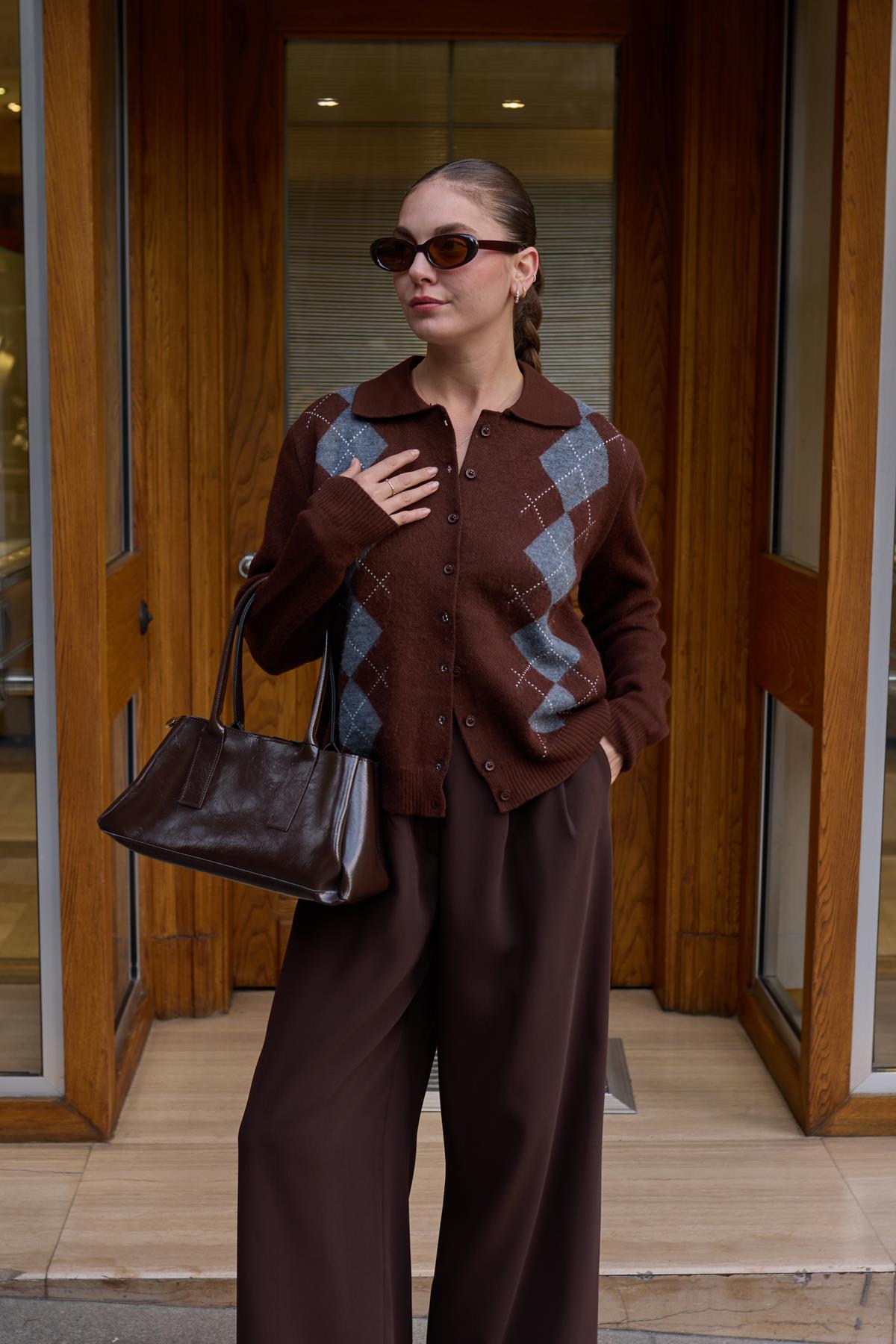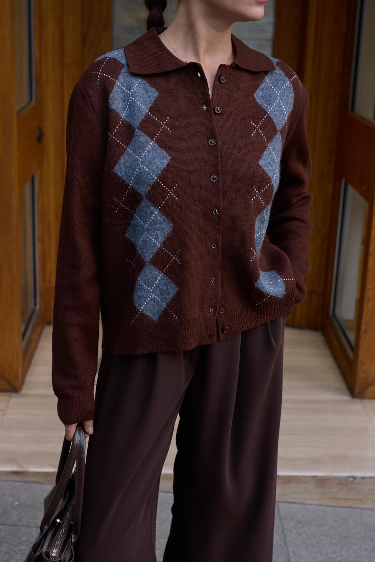 Kahve Polo Yaka Baklava Desen Hırka (104-00496)