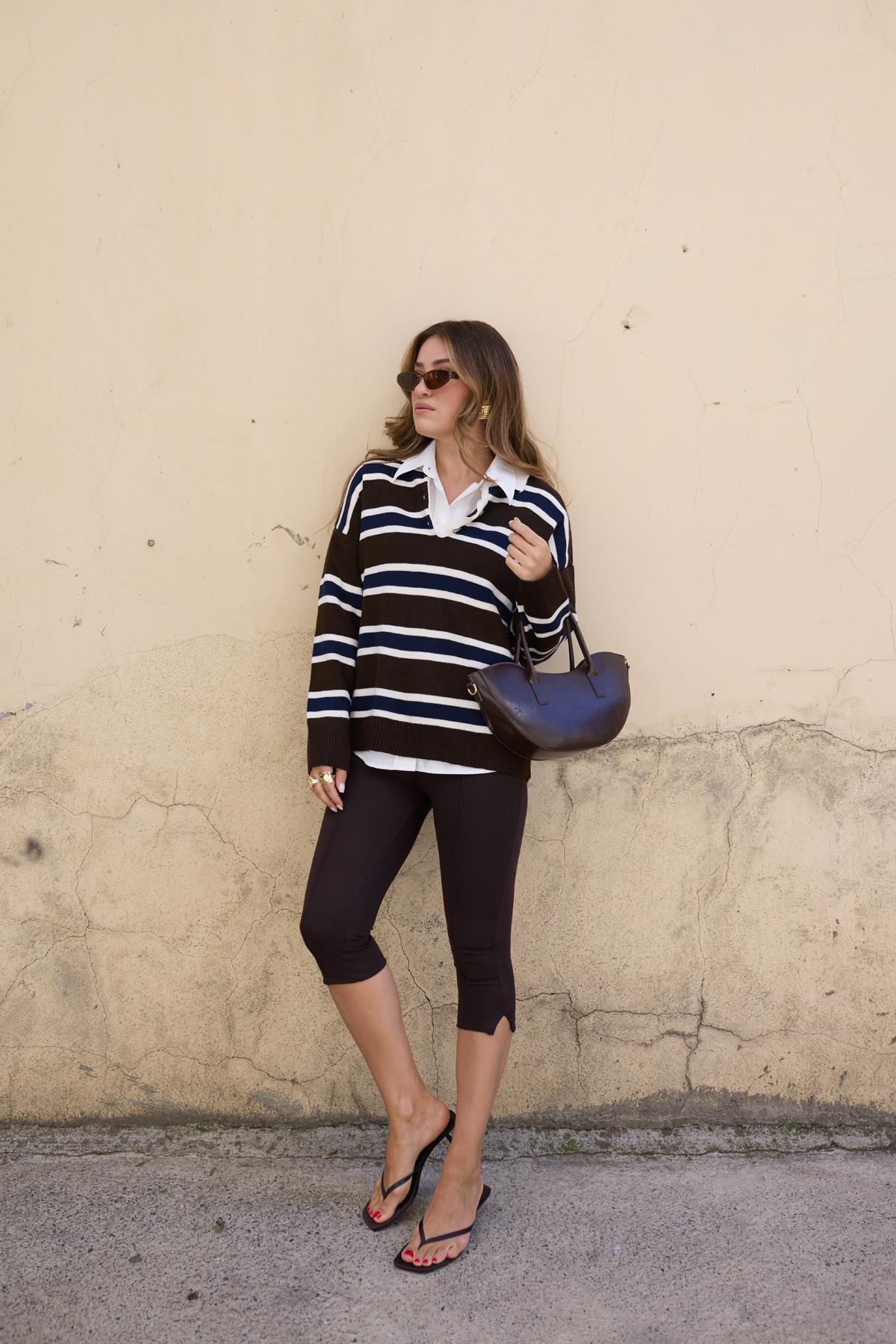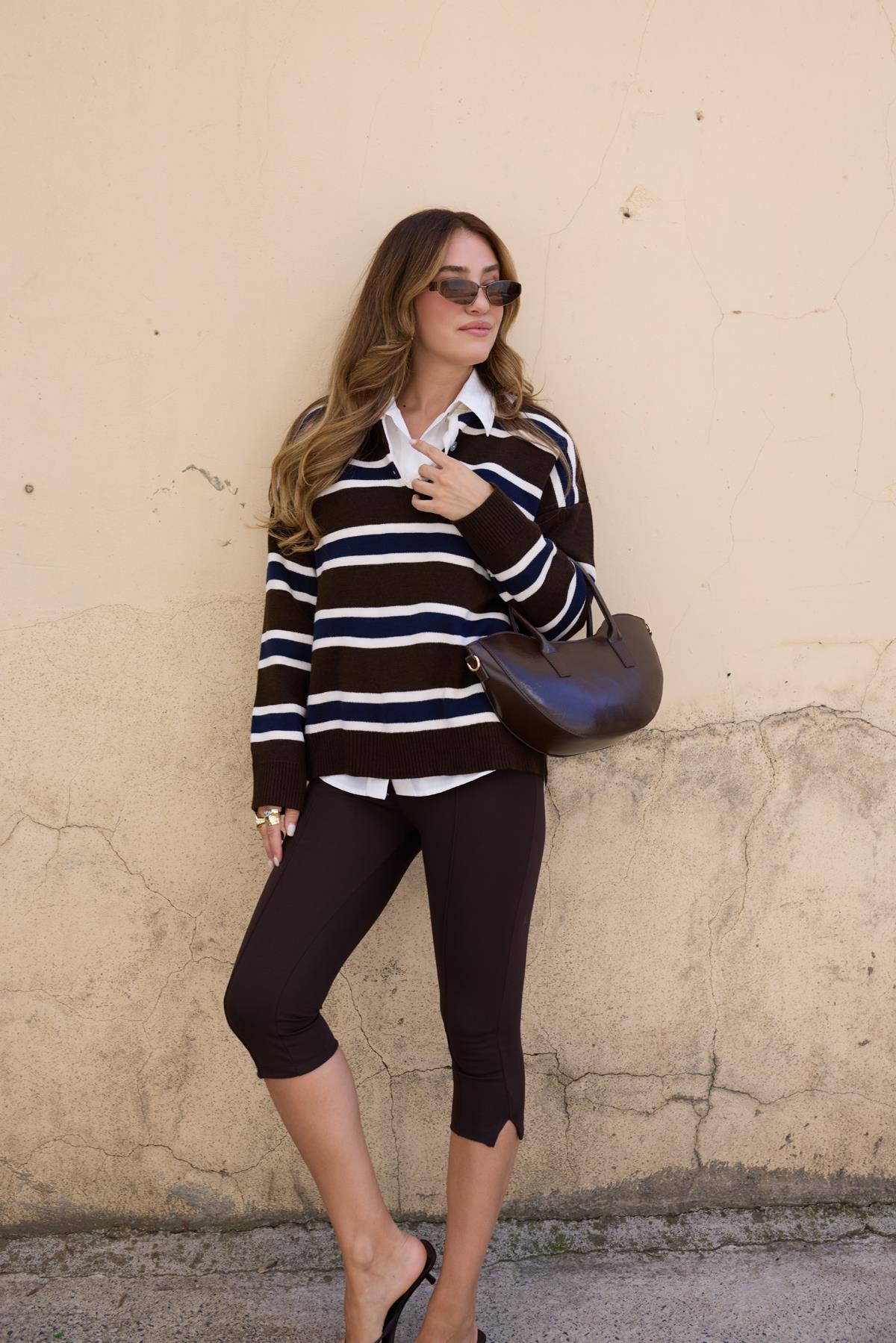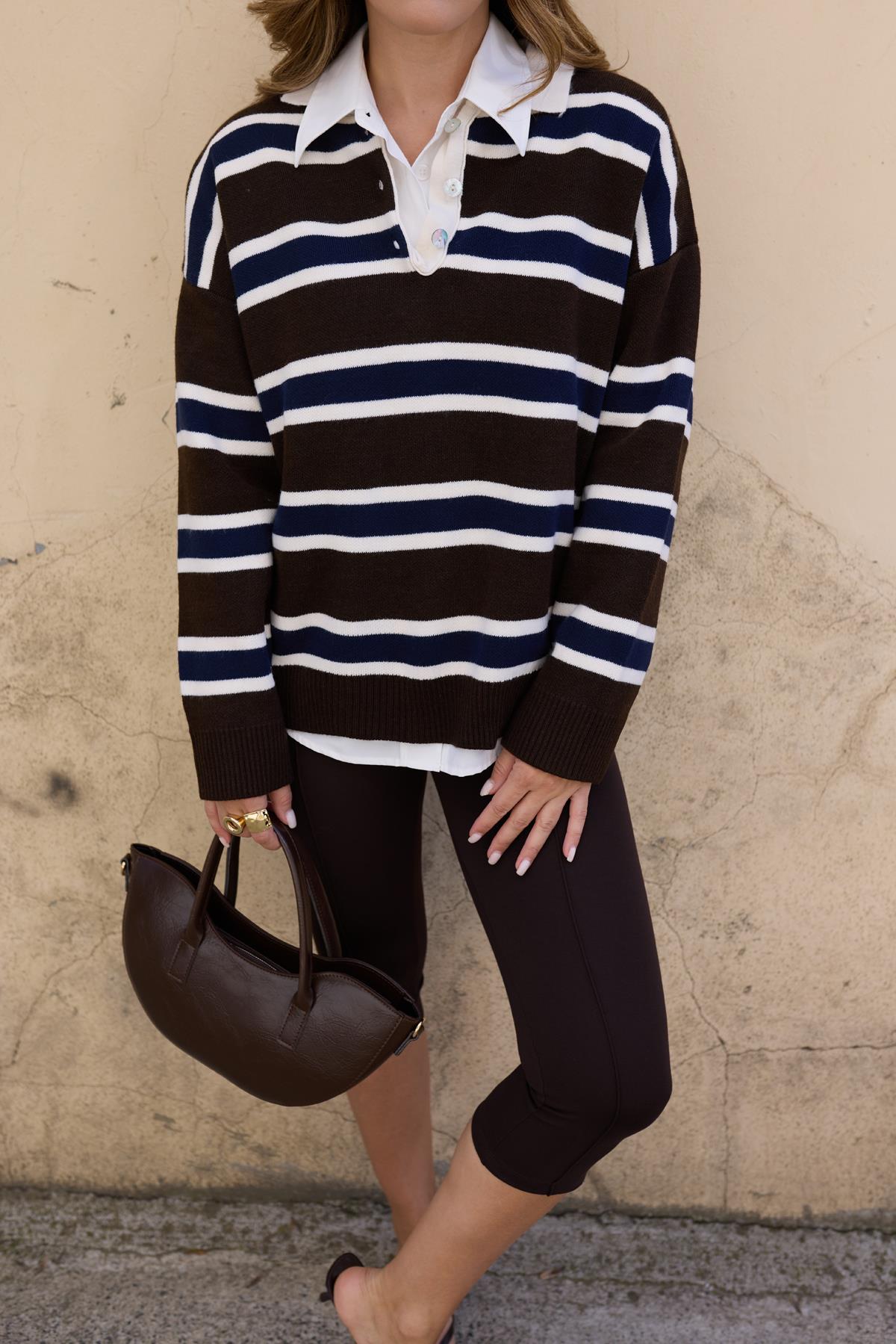 Kahve Polo Yaka Çizgili Oversize Triko (108-00711)