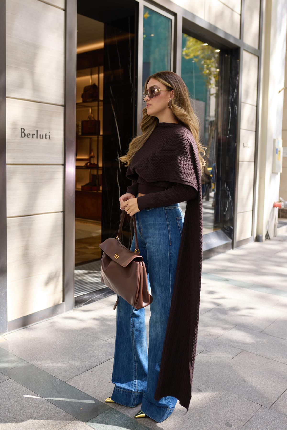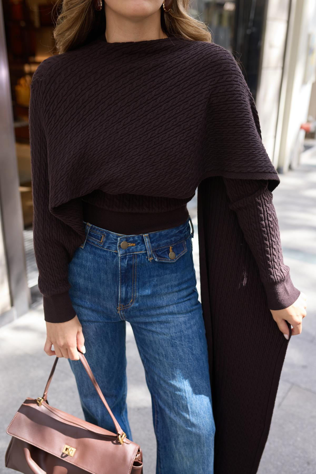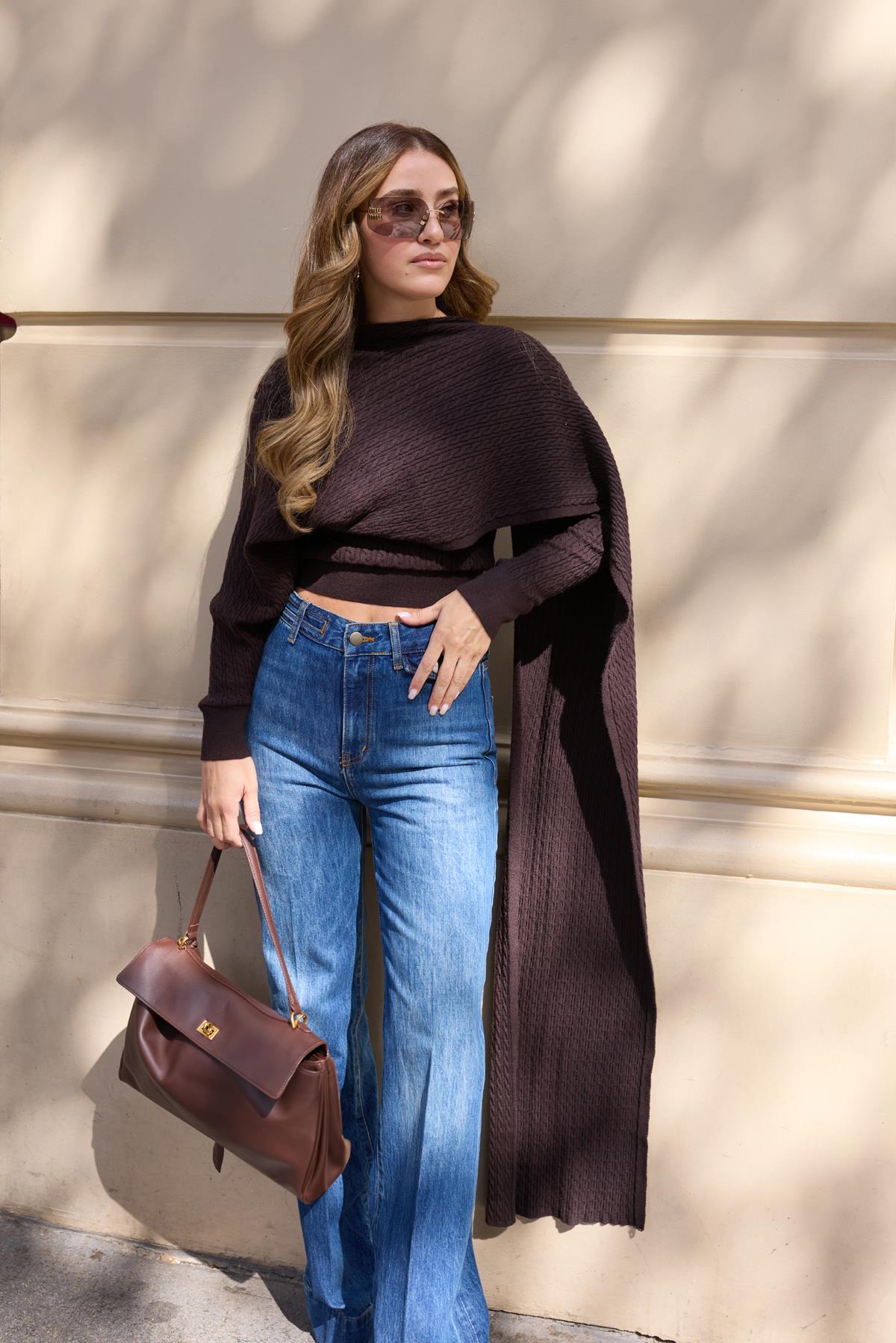 Siyah Şal Detaylı Örgü Kazak Ekru Şal Detaylı Örgü Kazak Kahve Şal Detaylı Örgü Kazak