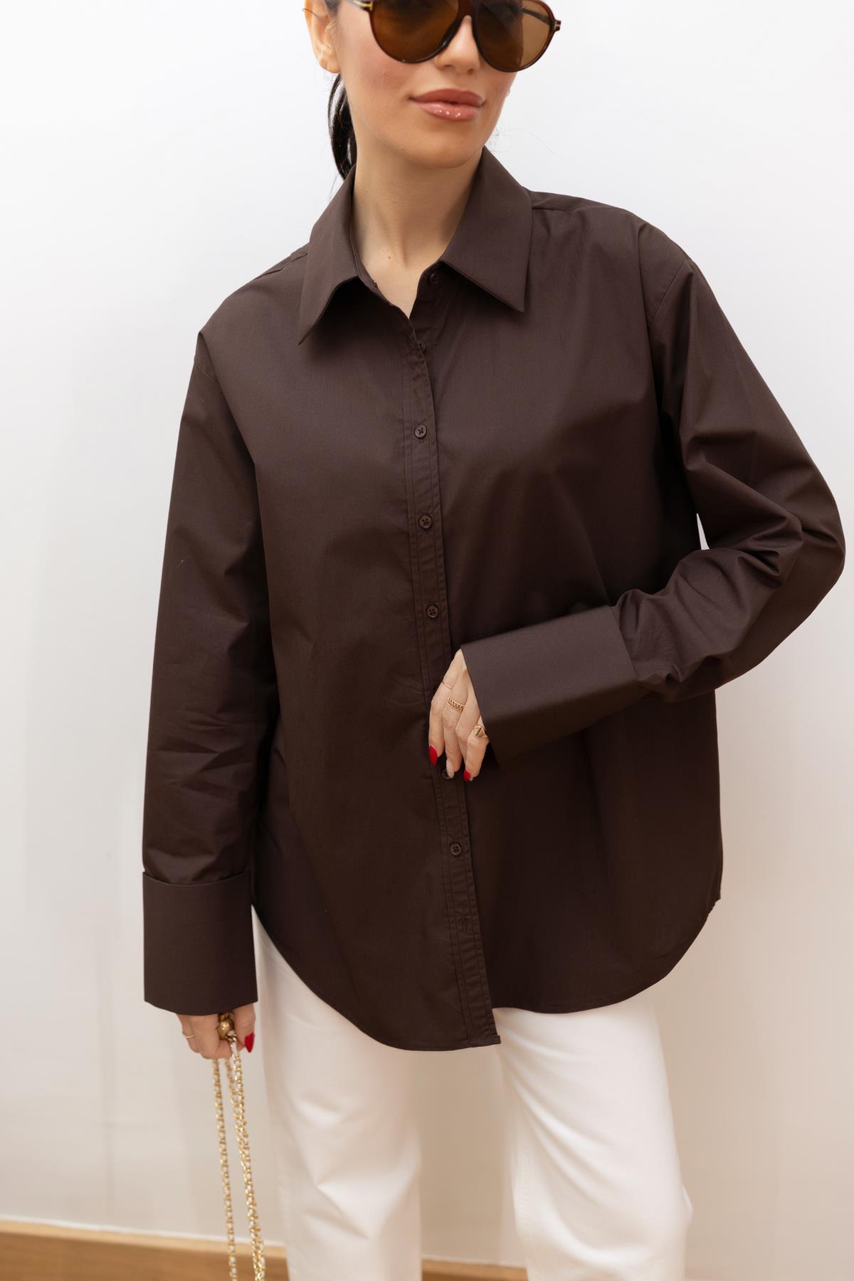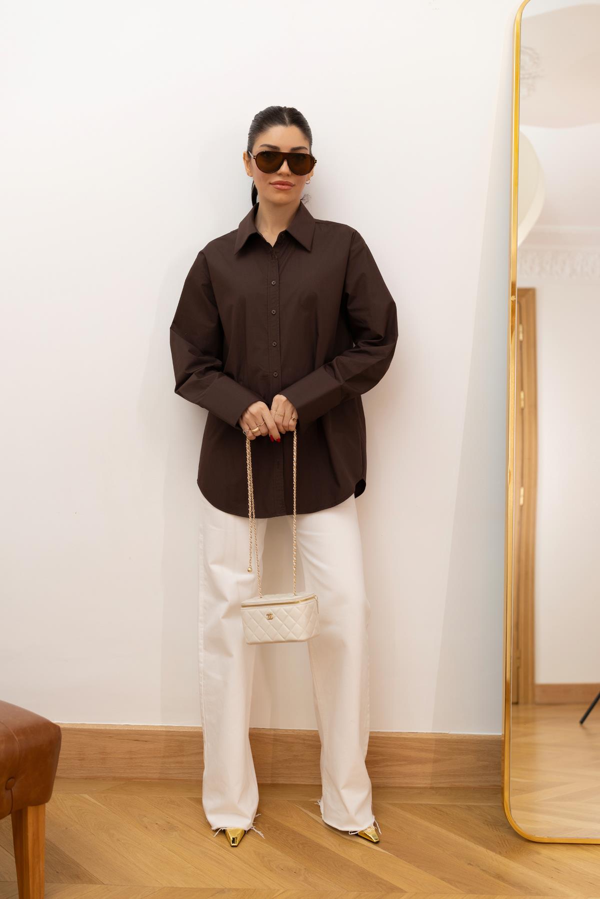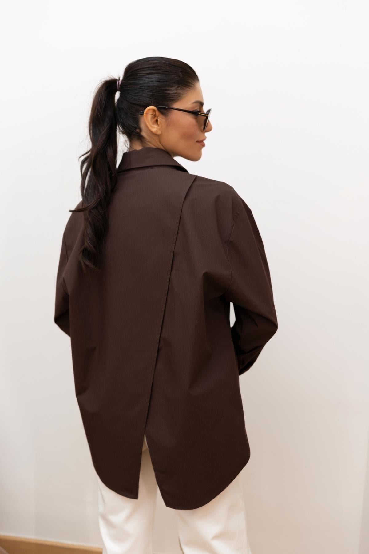 Kahve Sırt Dekolteli Oversize Gömlek (103-00756)