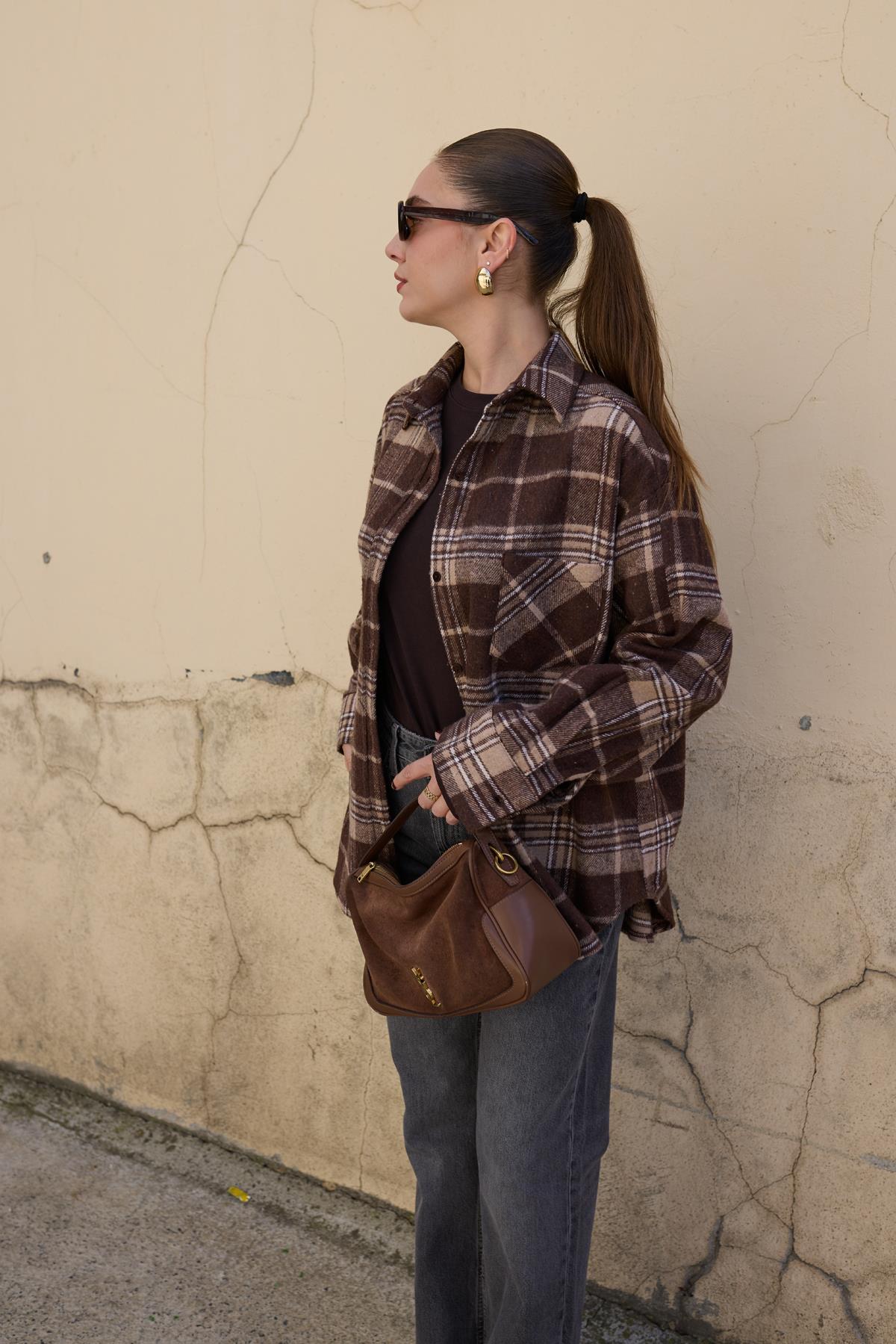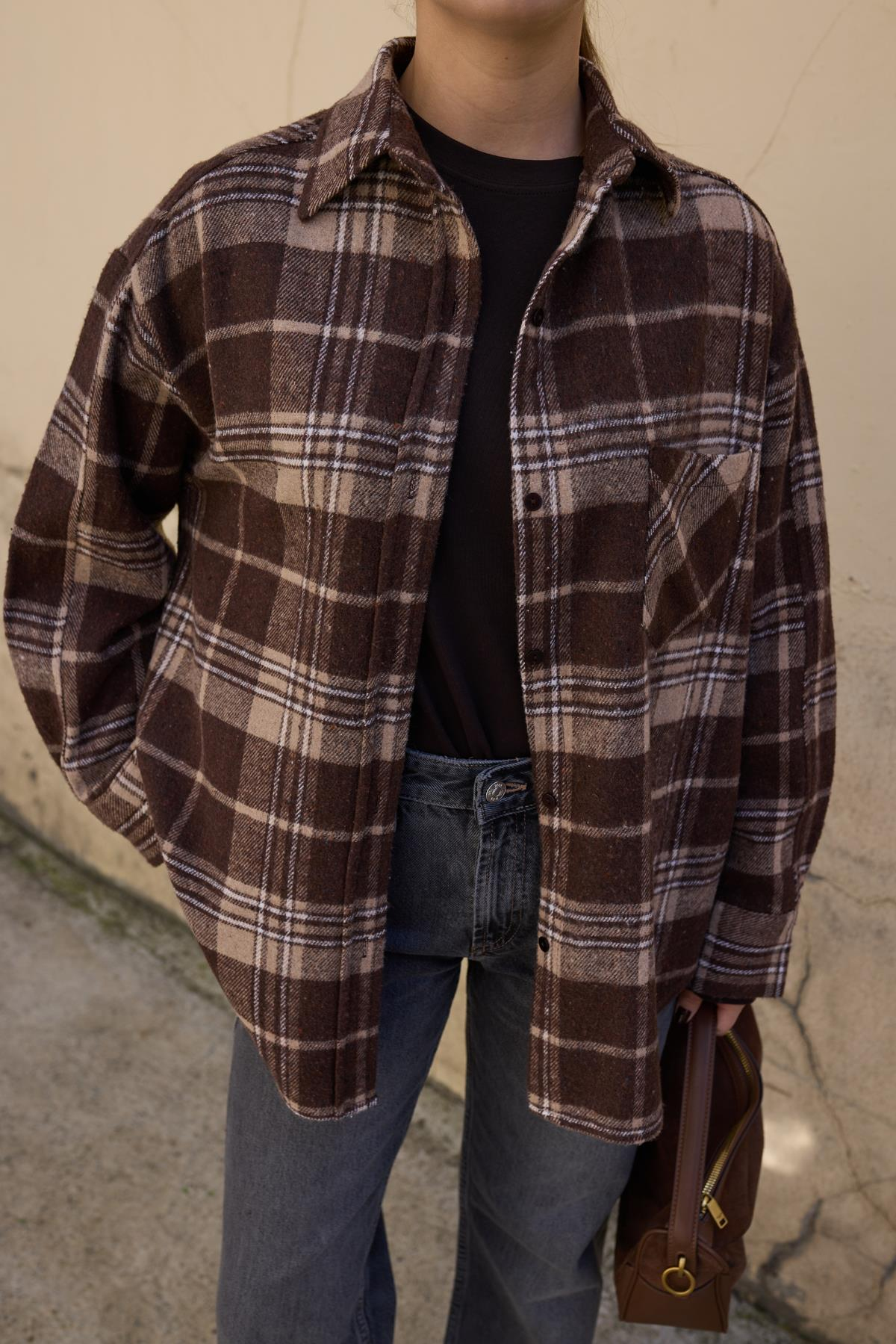 Kahve Tek Cep Detaylı Ekoseli Oduncu Gömlek (103-00744)