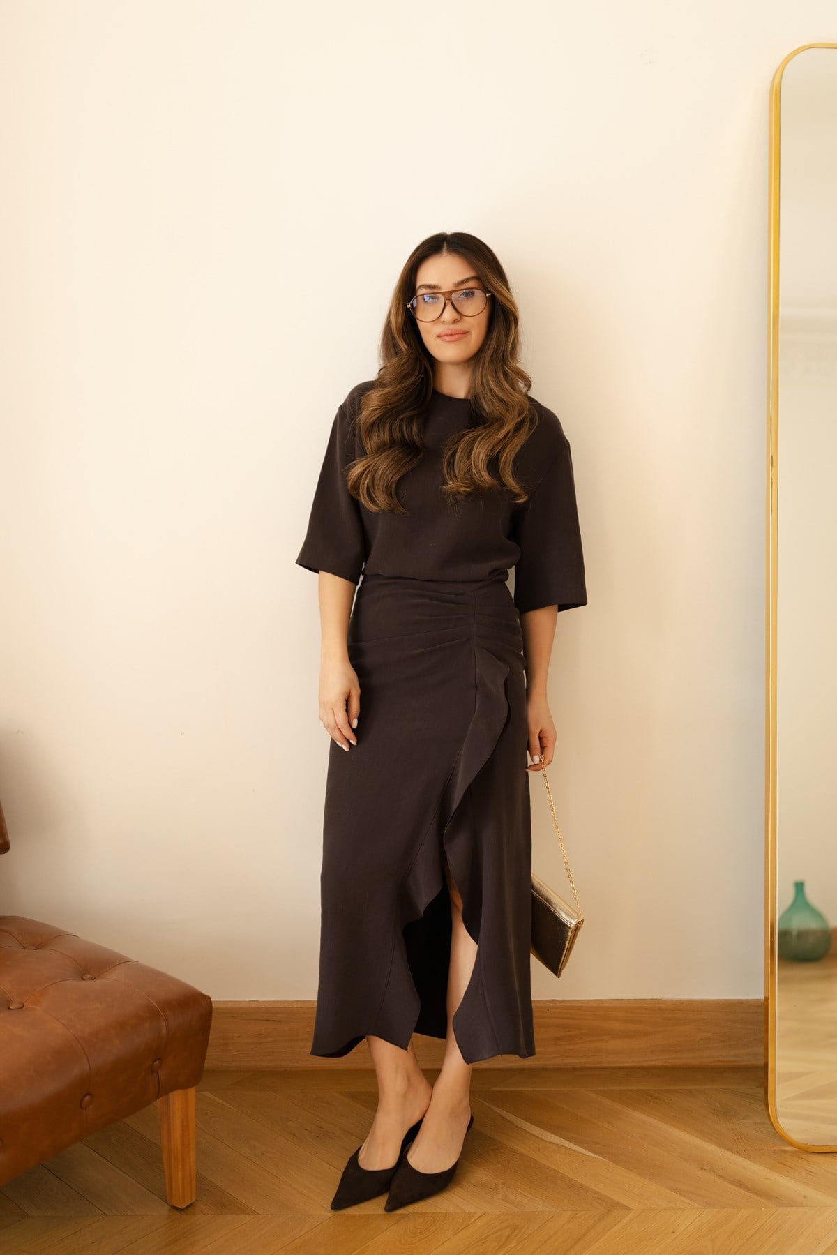 Haki Yarım Kol Yandan Drapeli Elbise Kahve Yarım Kol Yandan Drapeli Elbise Bej Yarım Kol Yandan Drapeli Elbise