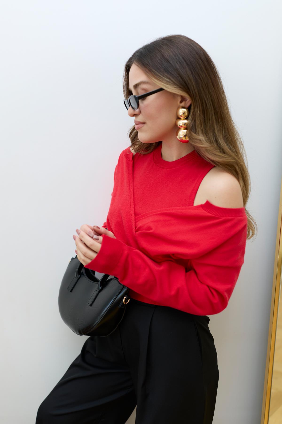 Kırmızı Kruvaze Yaka İkili Triko (108-00786)