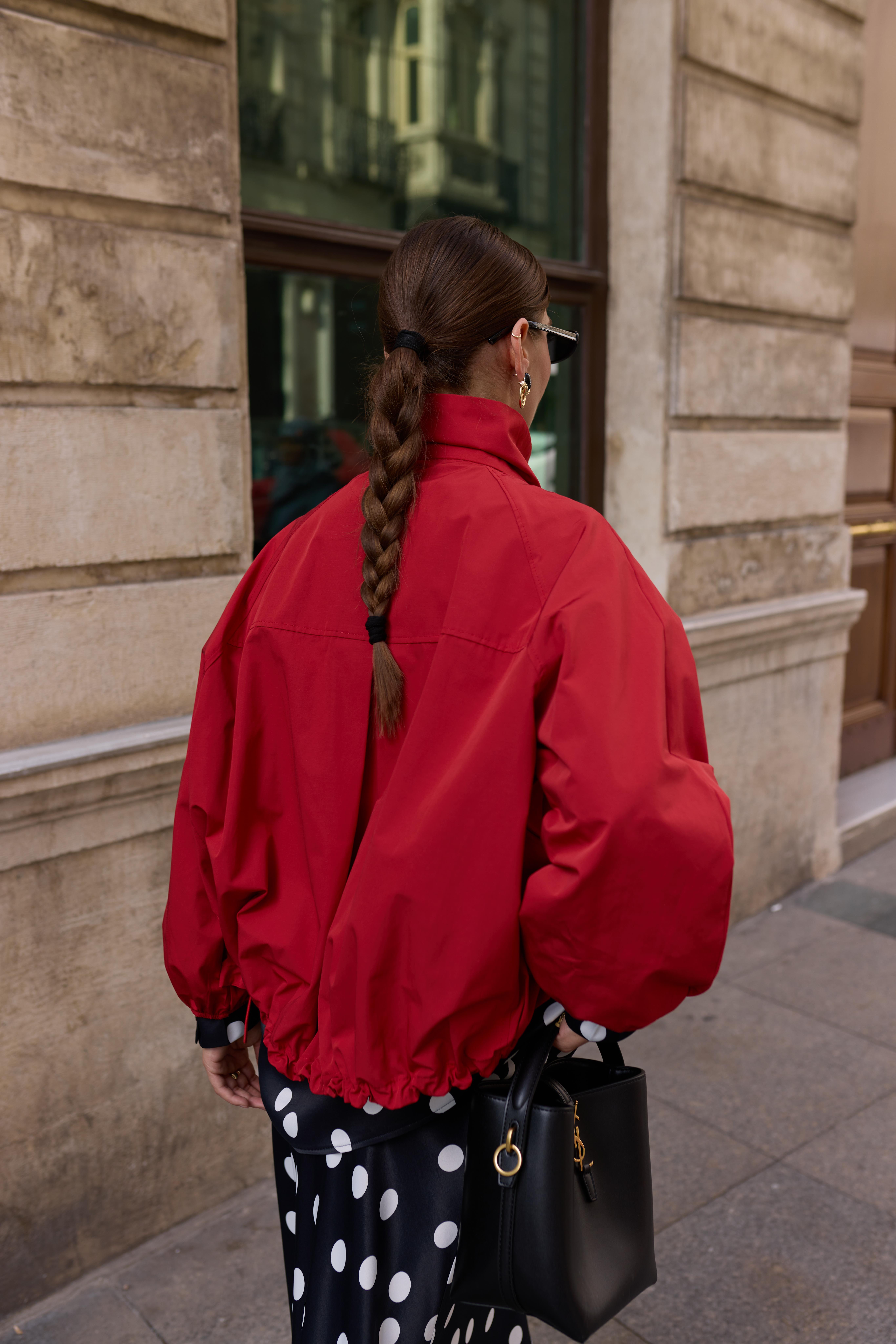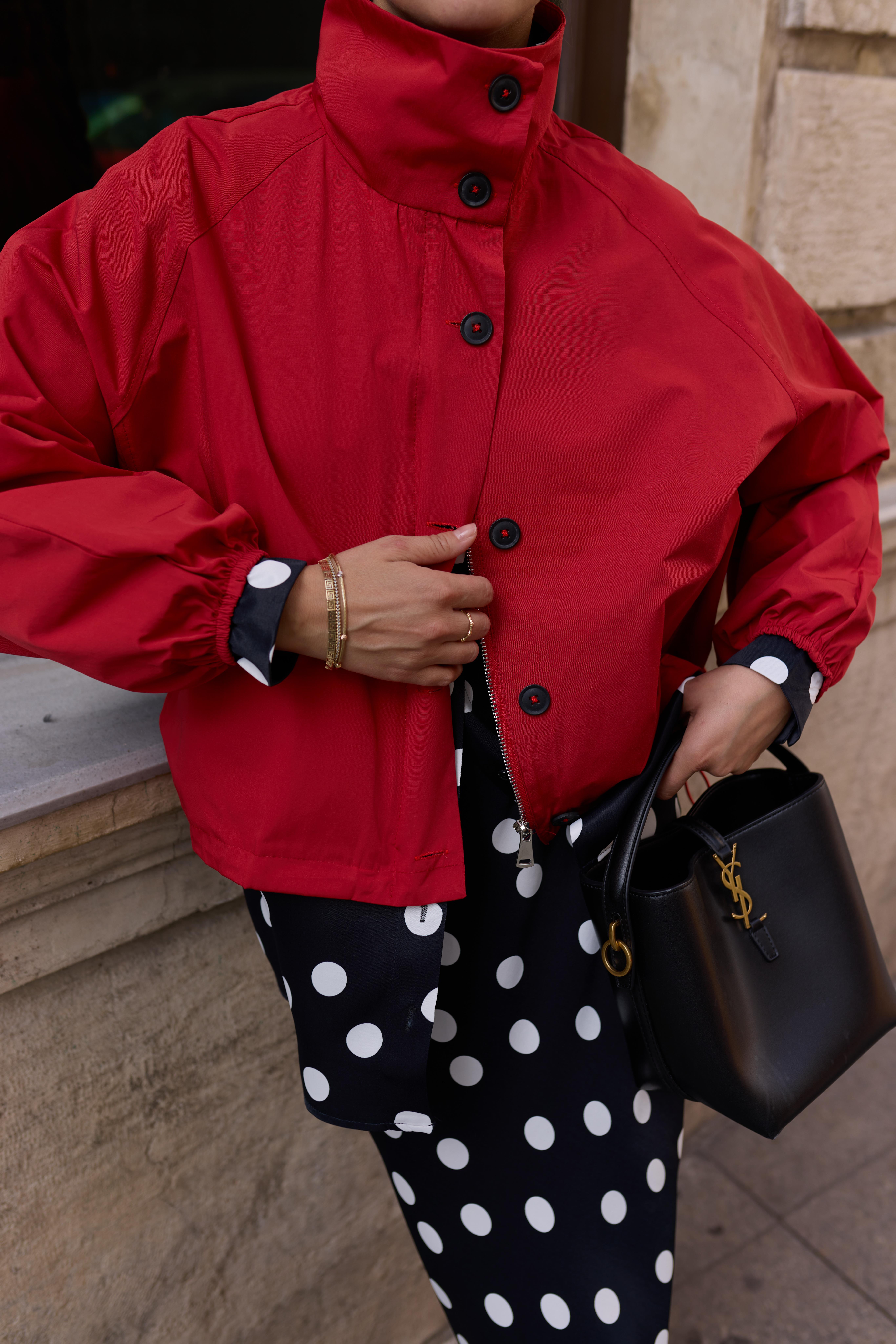 Siyah Su İtici Flora Kumaş Bomber Ceket Kırmızı Su İtici Flora Kumaş Bomber Ceket
