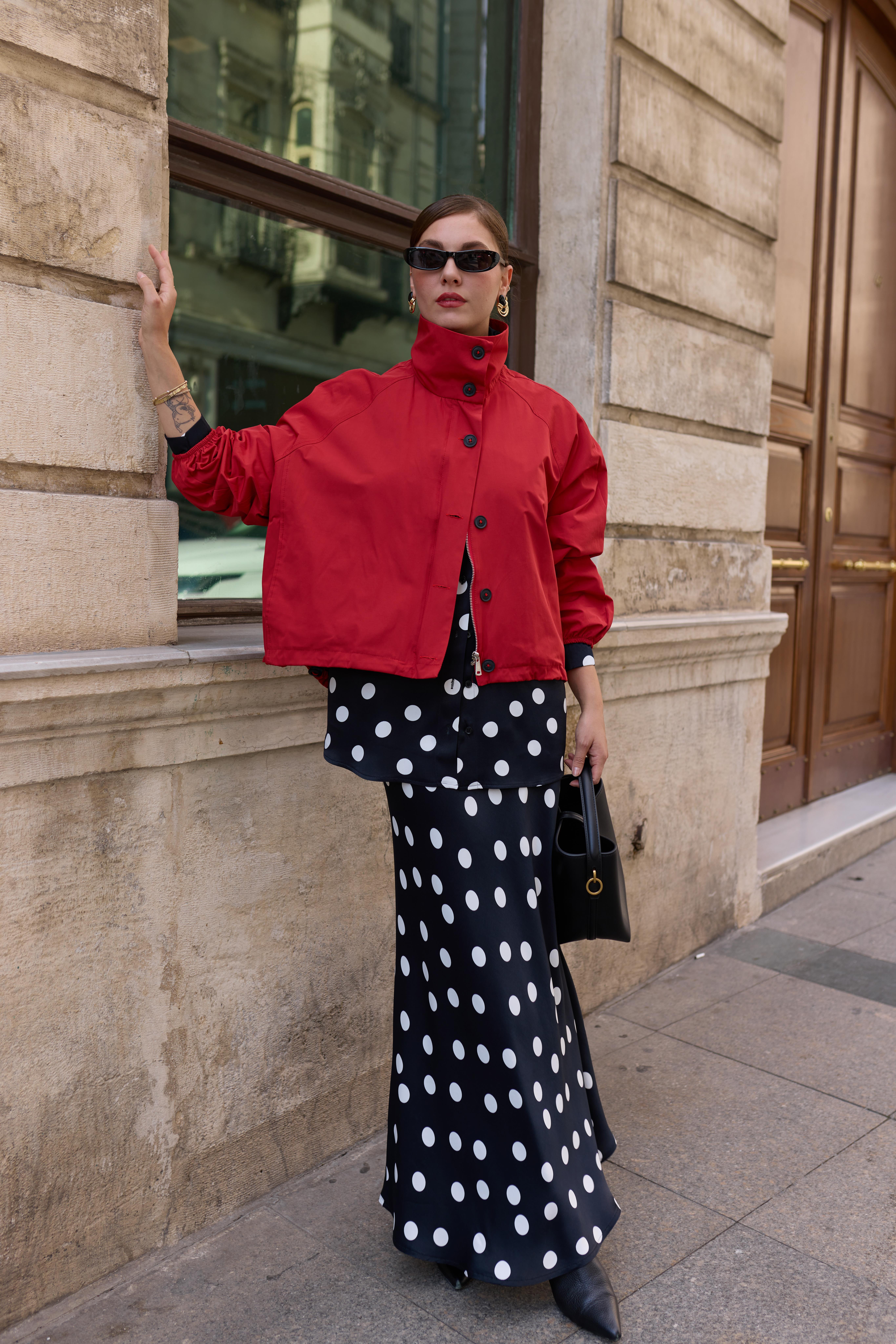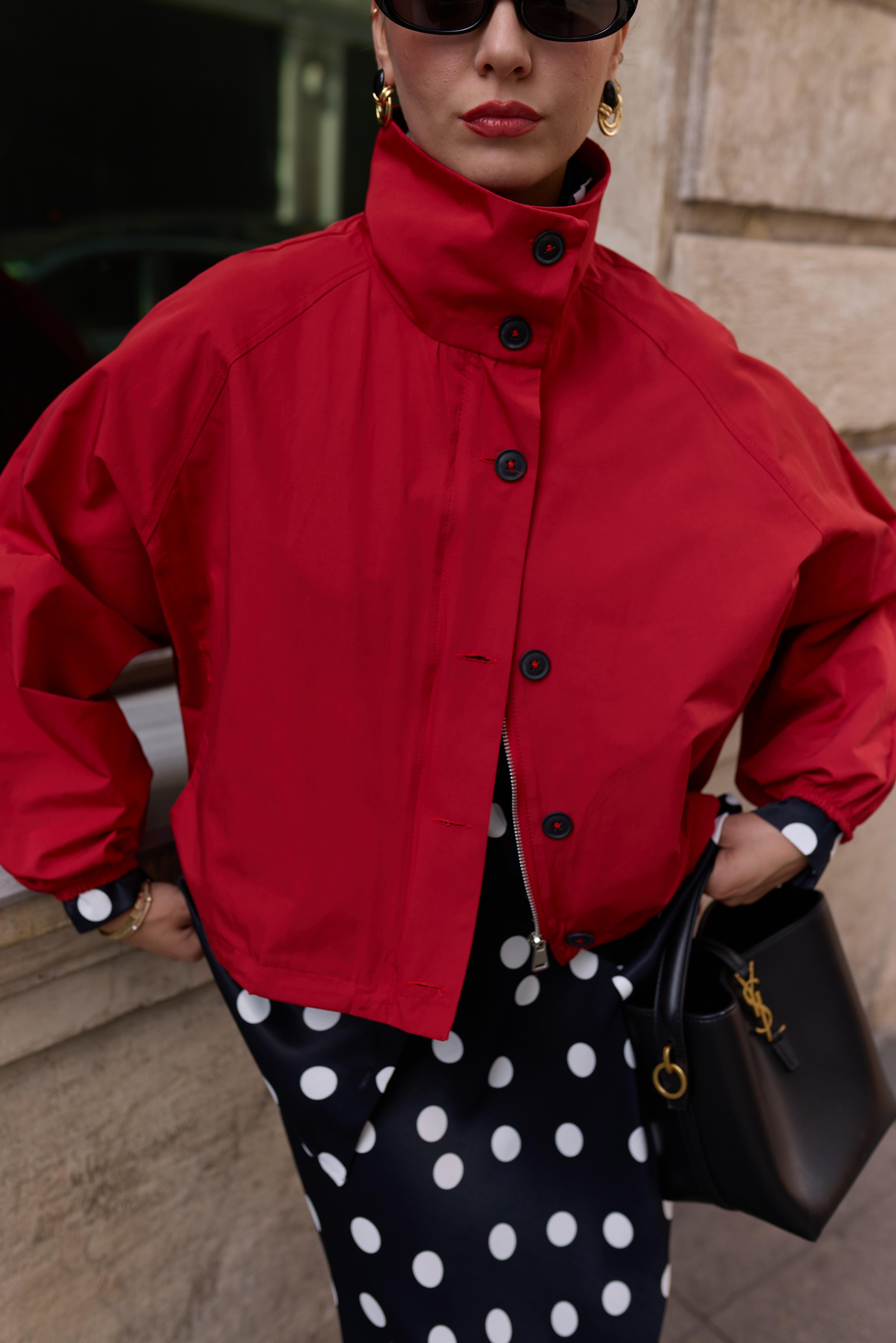 Kırmızı Su İtici Flora Kumaş Bomber Ceket (115-00629)