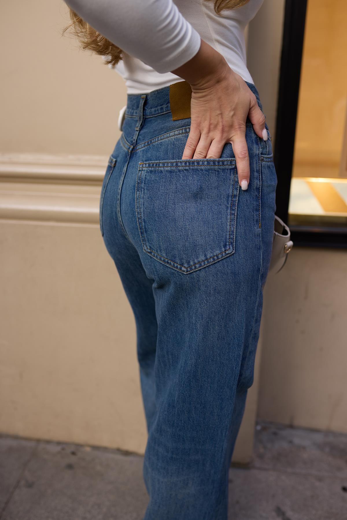 Koyu Mavi Taşlamalı Yüksek Bel Palazzo Jean Pantolon (114-00612)