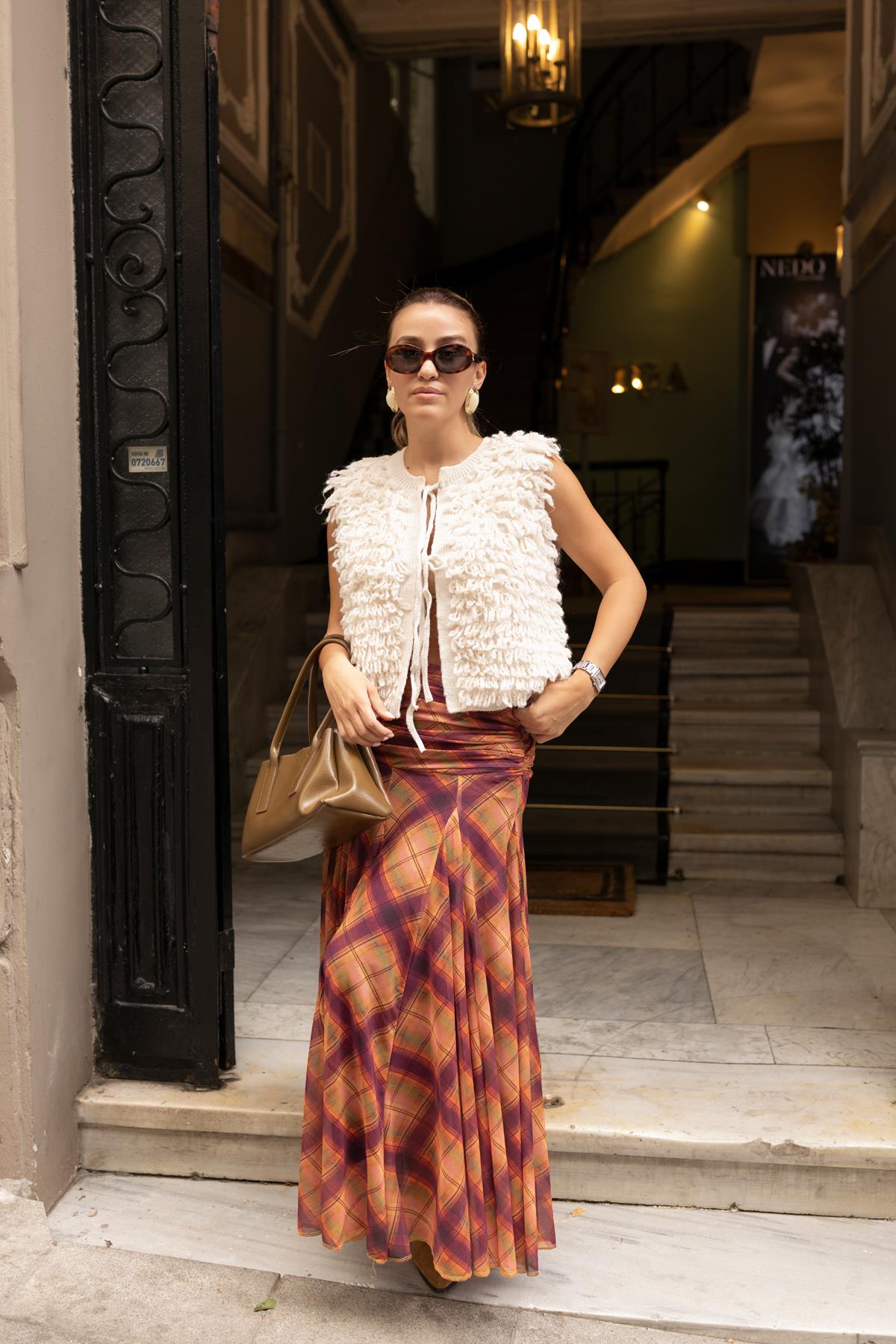Manken Boyu: 170 cm Manken Kilo: 56 kg Manken Beden: S beden Ürün Boyu Ortalama : 50 cm Ürün İçeriği: %85 Akrilik %8 Polyester %7 Polyamid