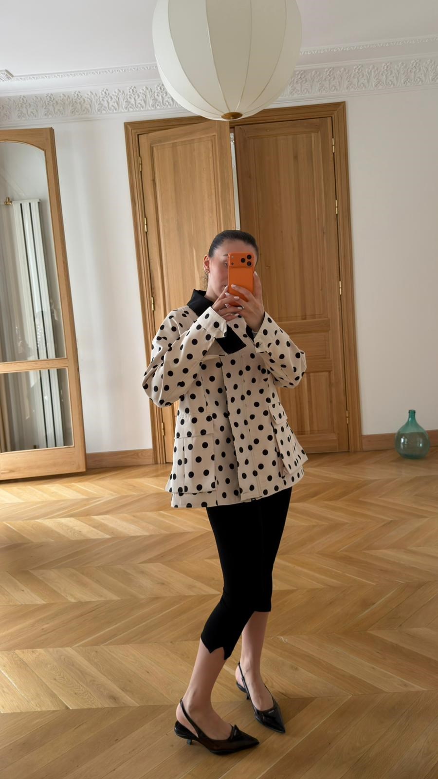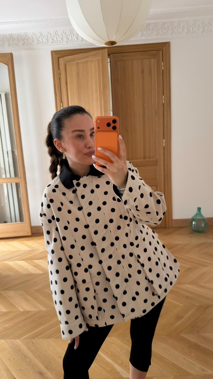 Krem Önden Cep Detaylı Puantiyeli Ceket (115-00710)