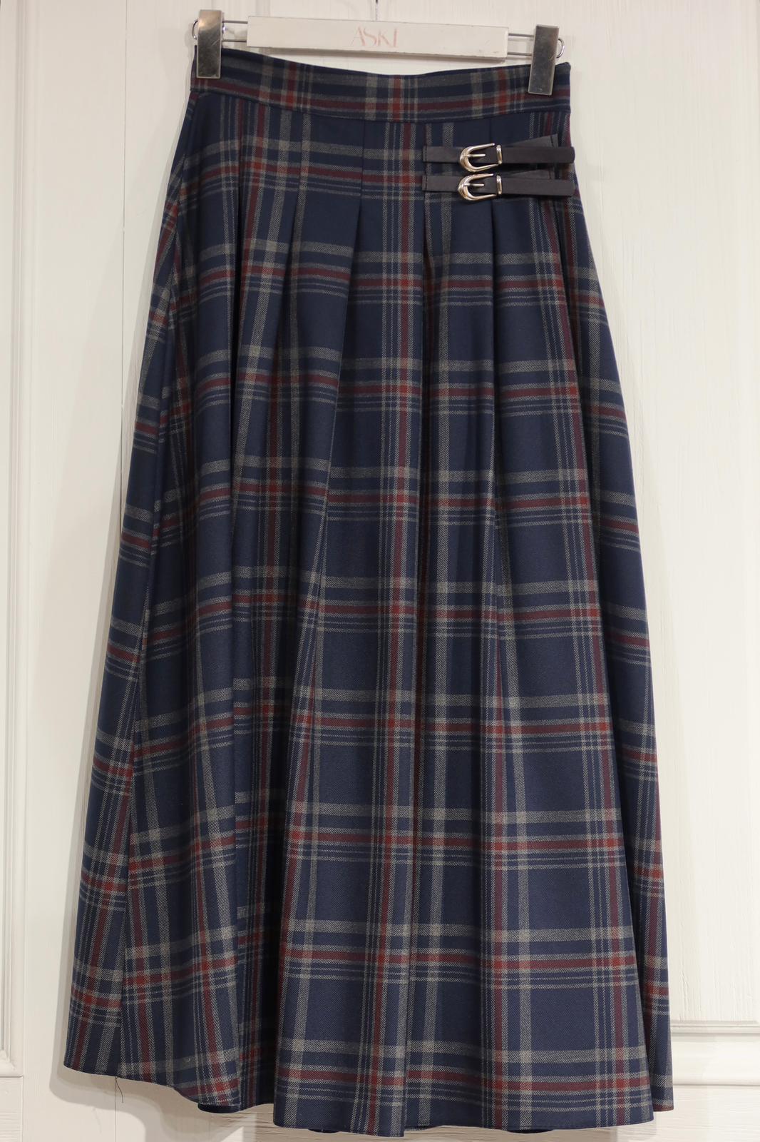 Lacivert Önden Toka Detaylı Ekoseli Etek (109-00485)