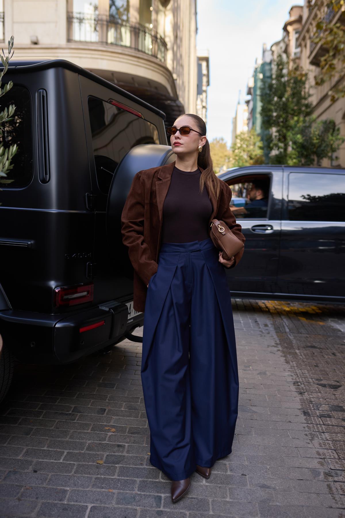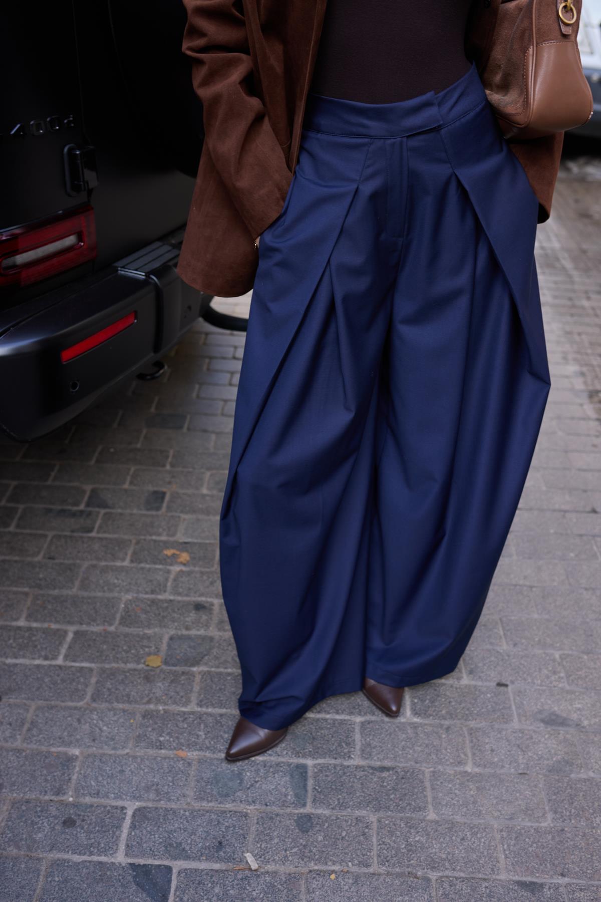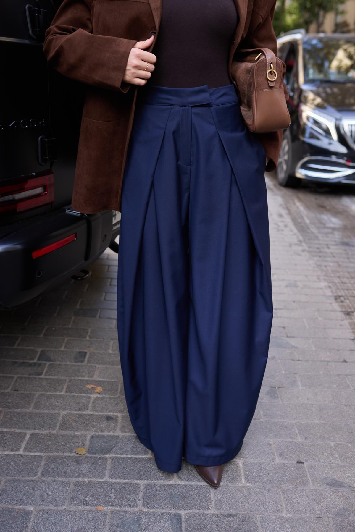 Lacivert Pile Detaylı Bol Paça Pantolon Bej Pile Detaylı Bol Paça Pantolon