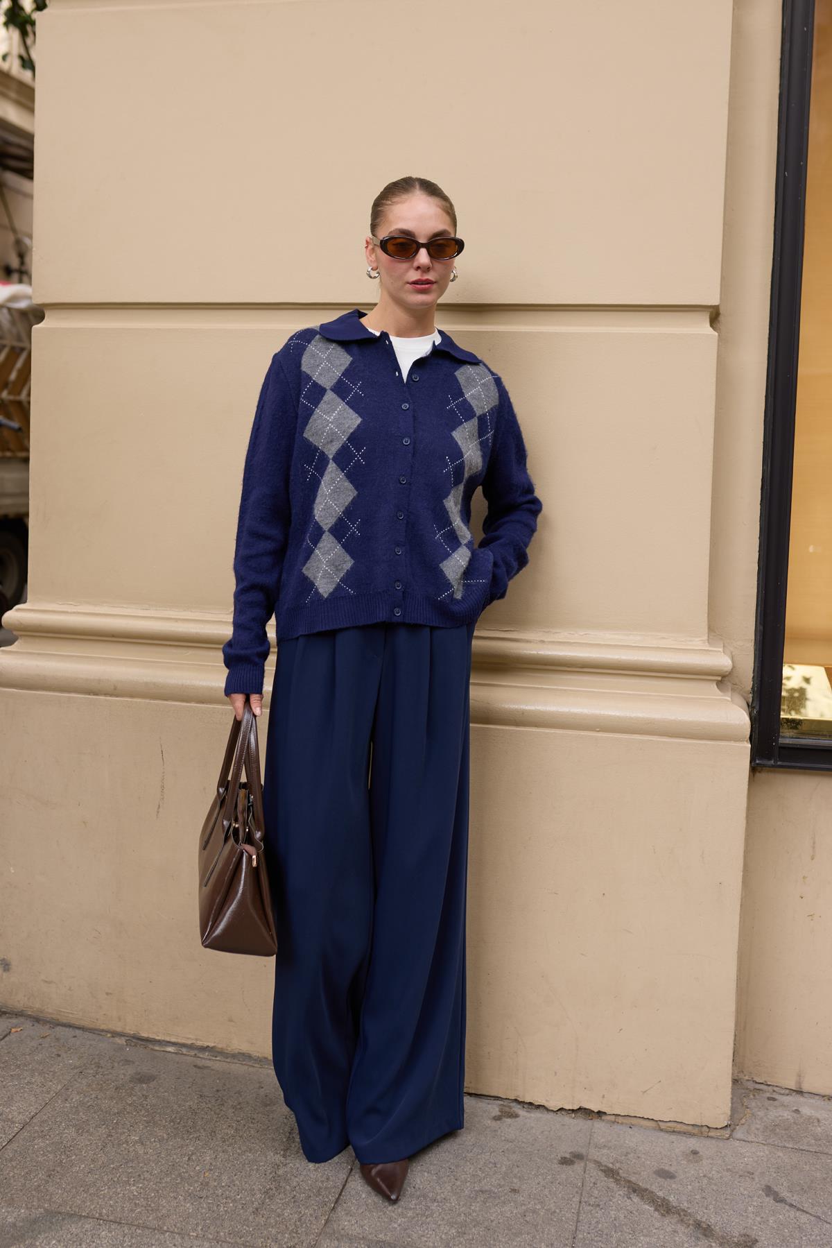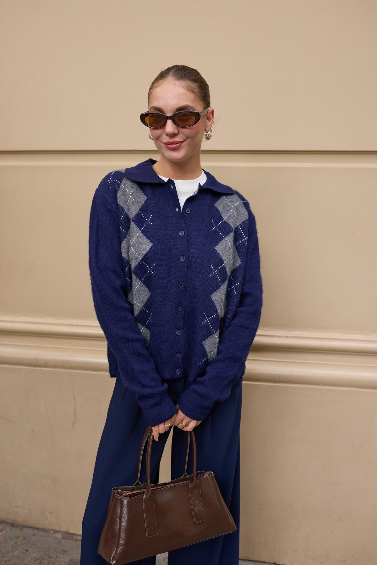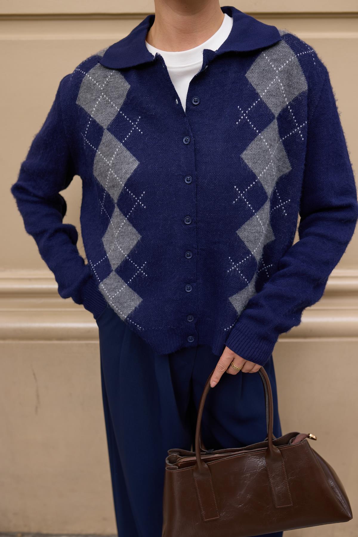 Lacivert Polo Yaka Baklava Desen Hırka (104-00496)