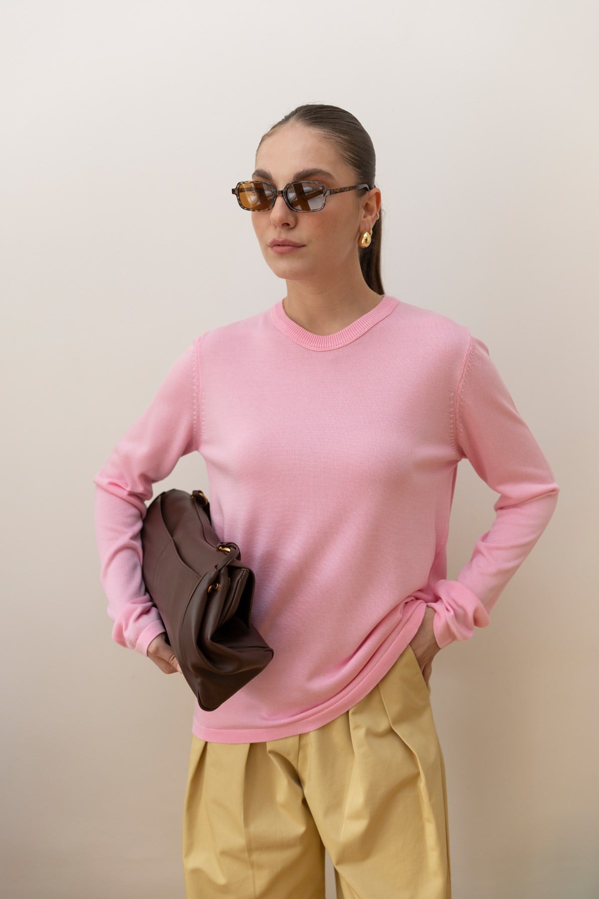 Pembe Bisiklet Yaka Basic Mevsimlik Triko (108-00790)