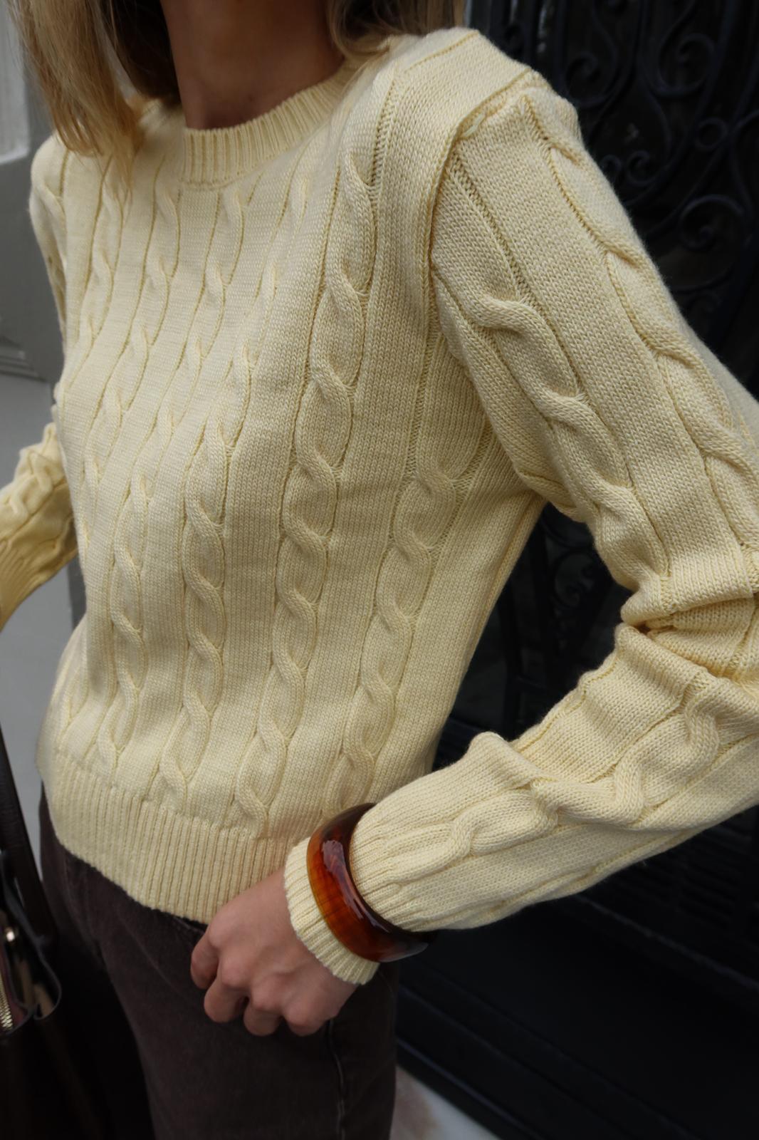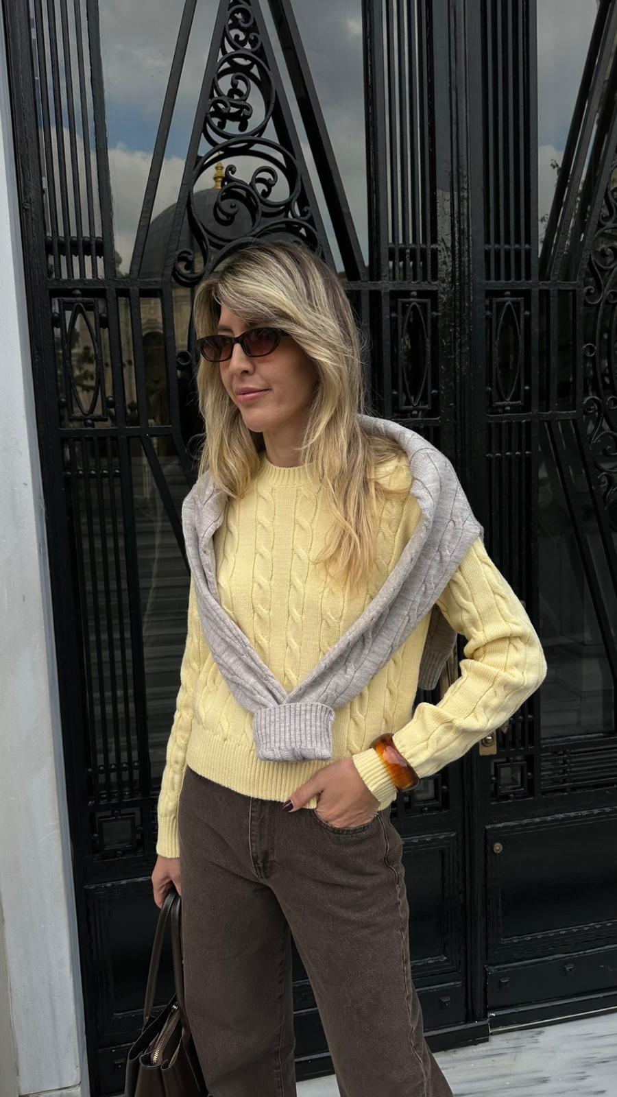 Sarı Bisiklet Yaka Saç Örgü Detaylı Triko (108-00707)