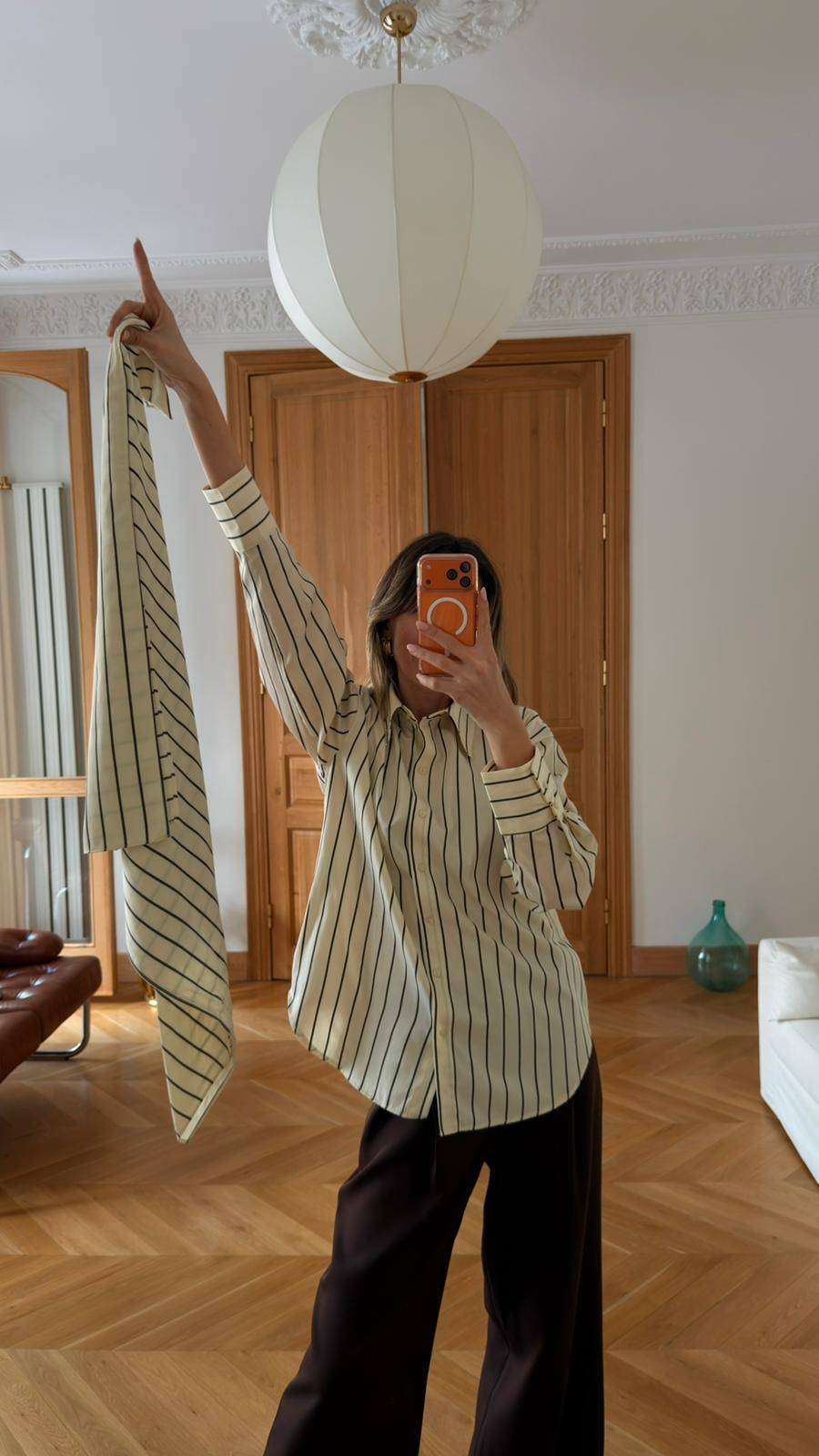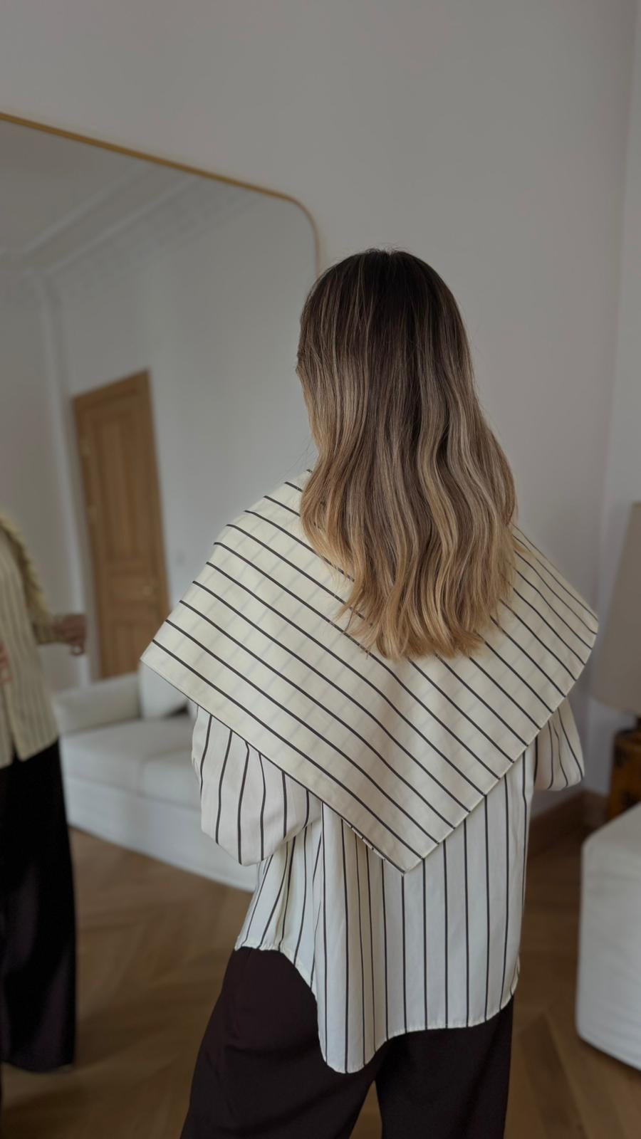 Mavi Şal Detaylı Çizgili Oversize Gömlek Sarı Şal Detaylı Çizgili Oversize Gömlek