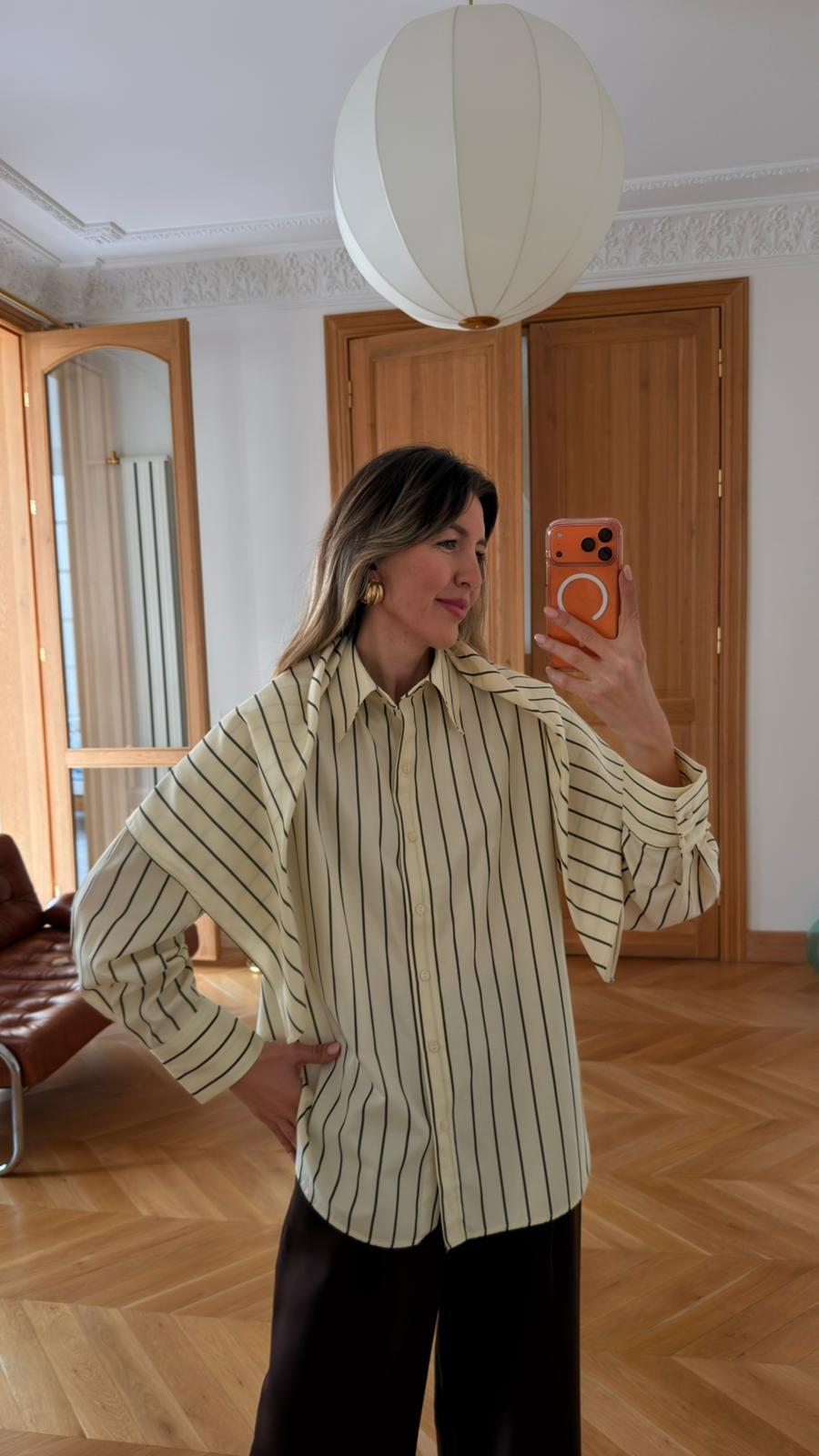 Sarı Şal Detaylı Çizgili Oversize Gömlek (103-00764)