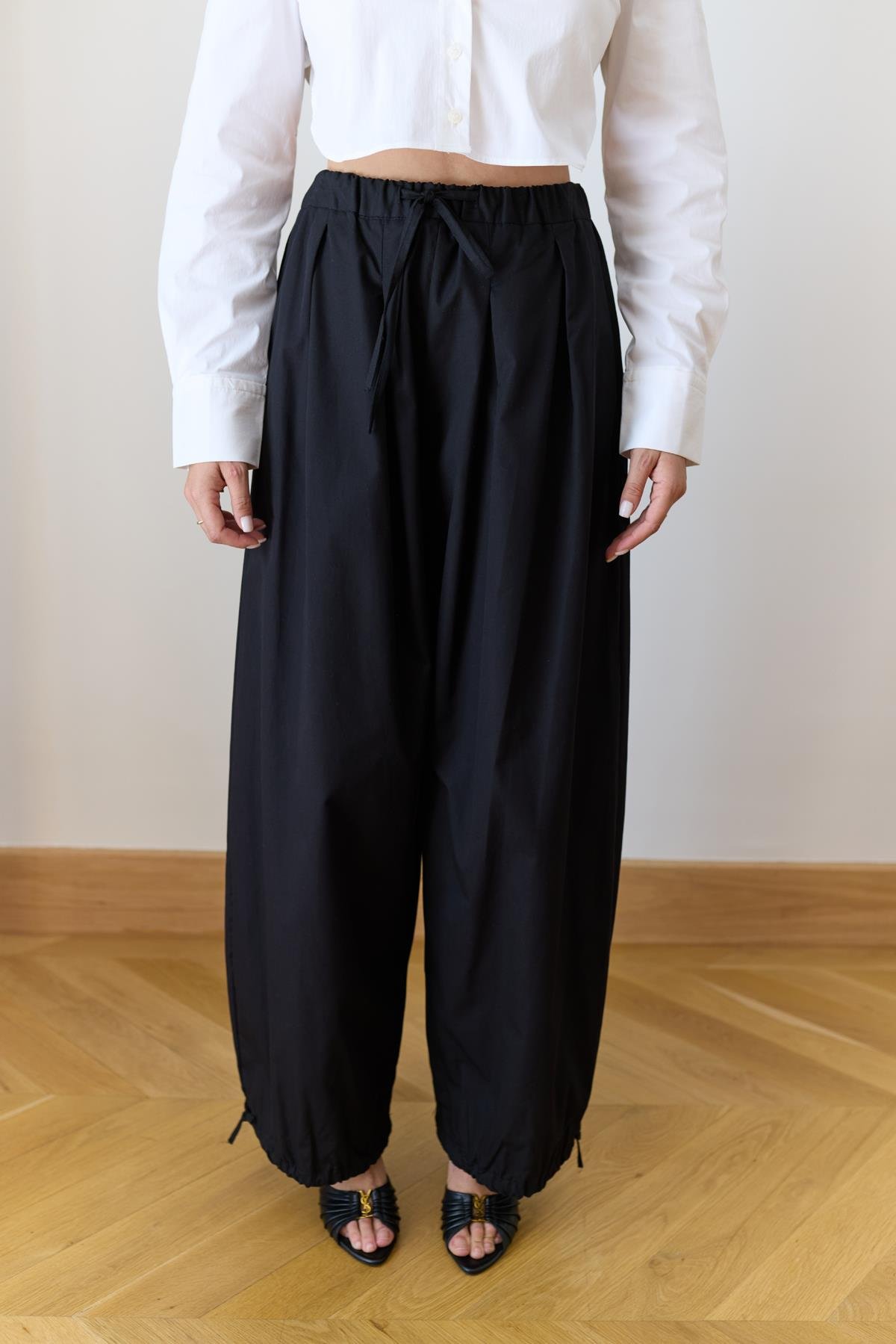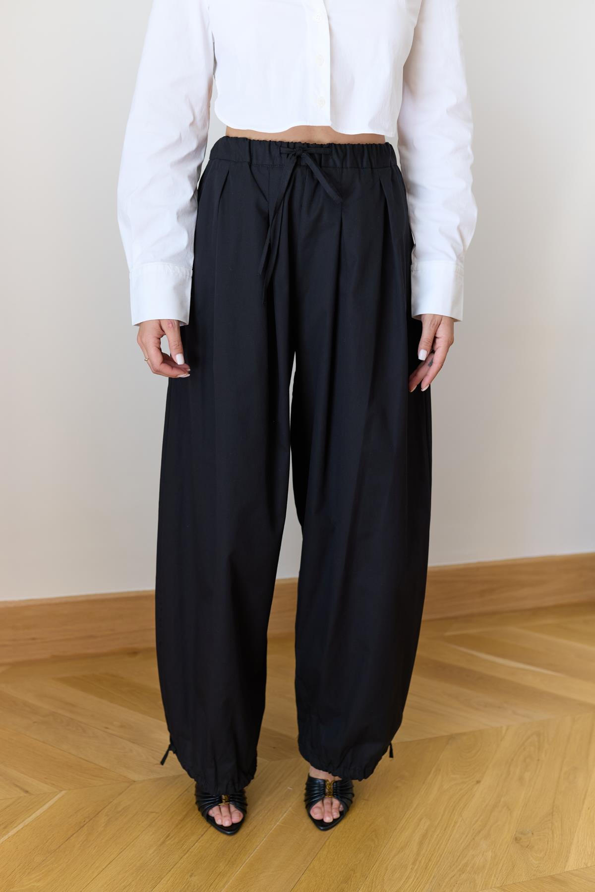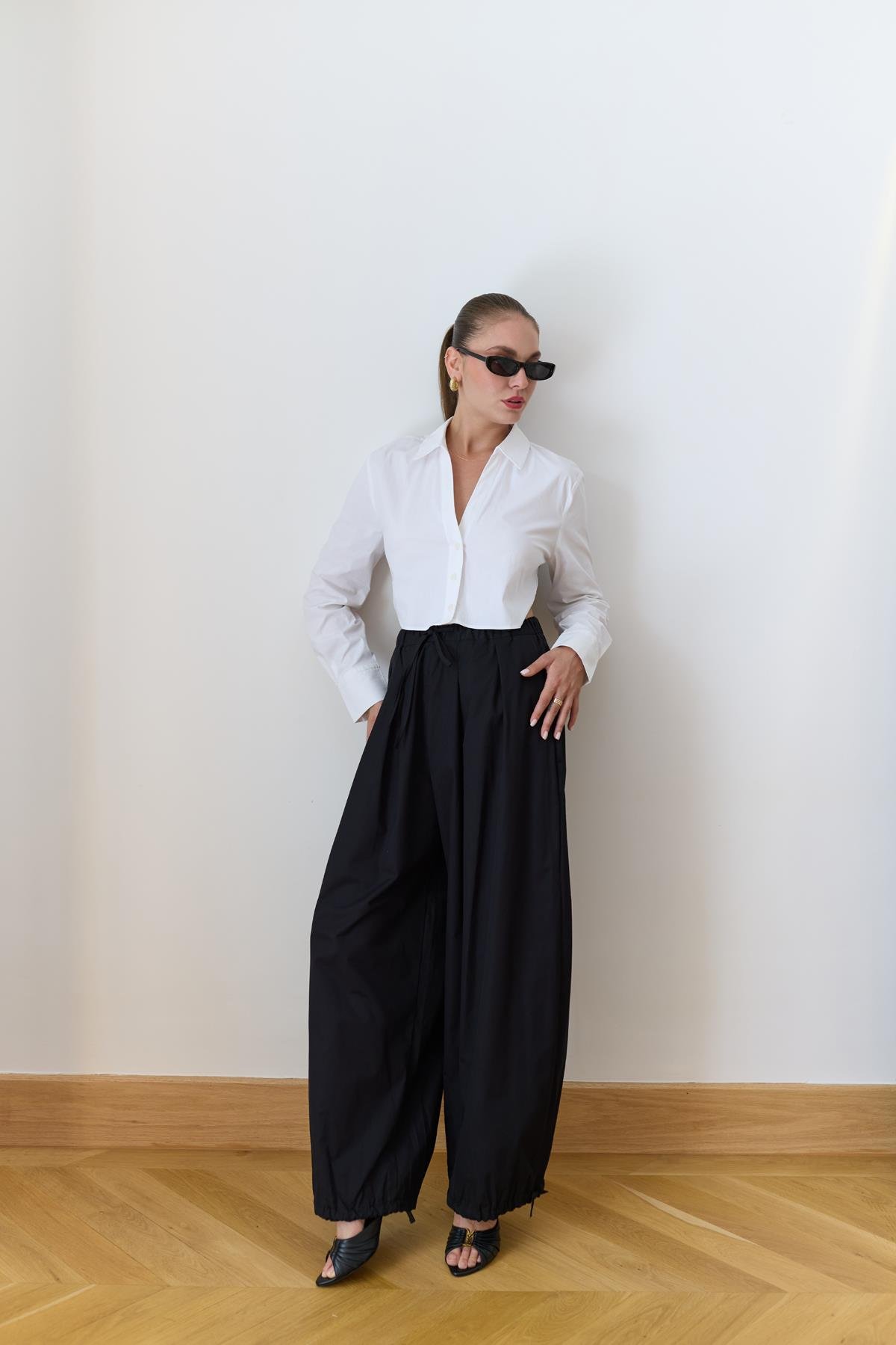 Siyah Beli Lastikli Ve Kuşaklı Şalvar Pantolon (110-00749)