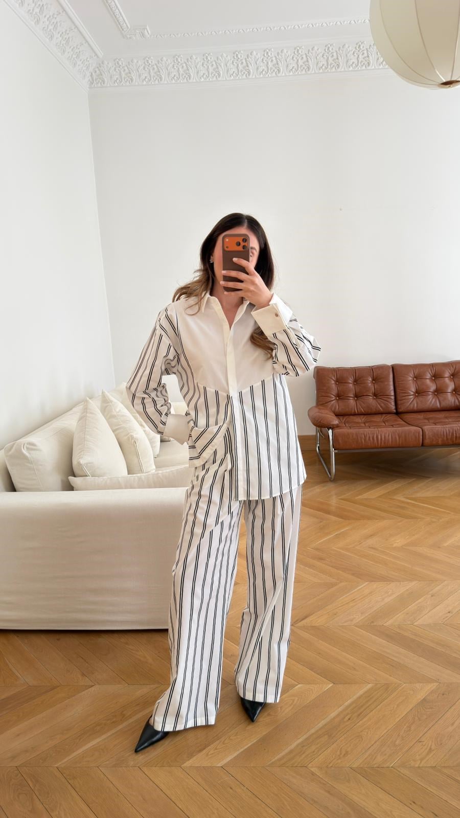 Siyah- Beyaz Çizgili Oversize Gömlek Pantolon Takım
