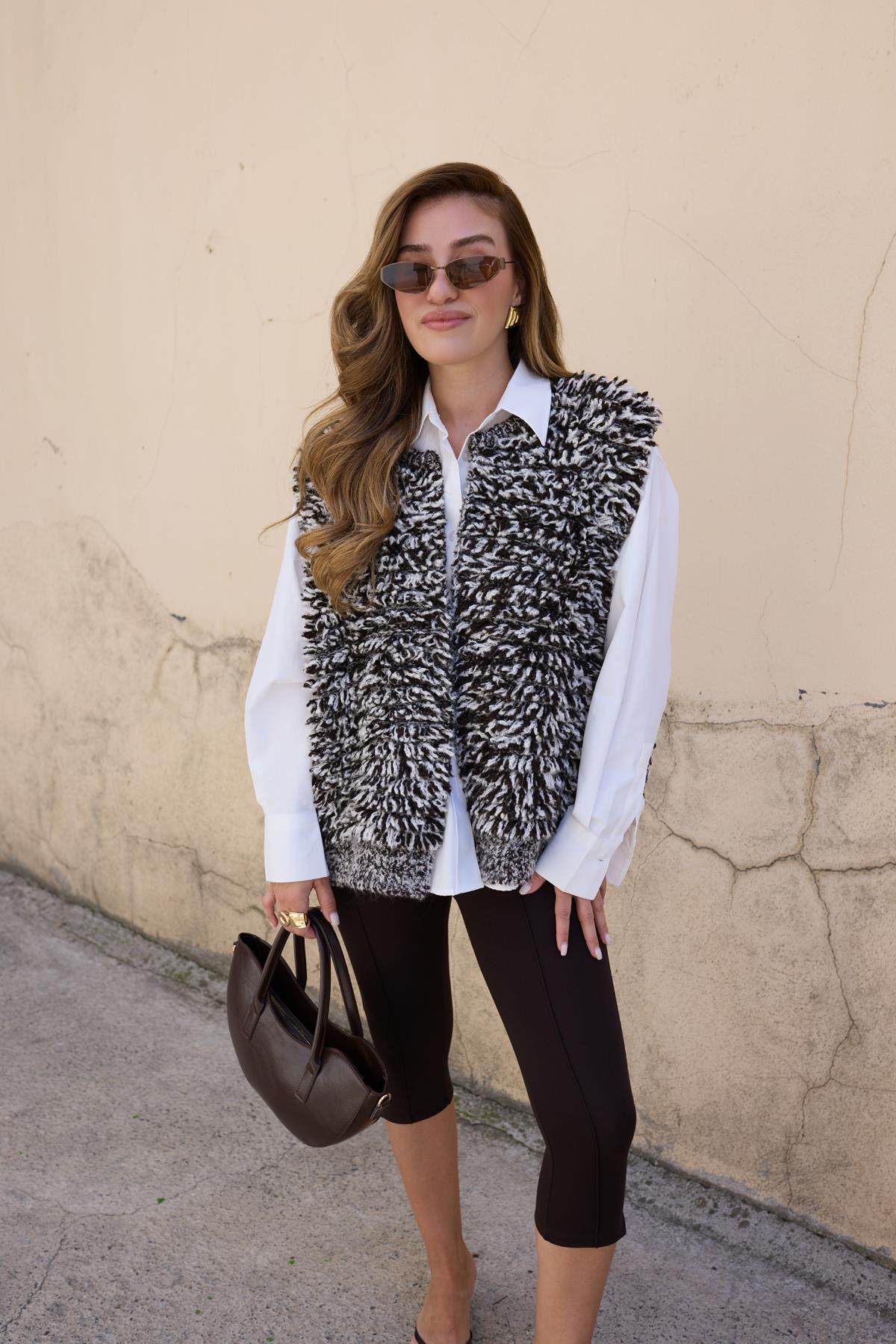 Siyah- Beyaz Peluş Oversize Yelek (124-00213)